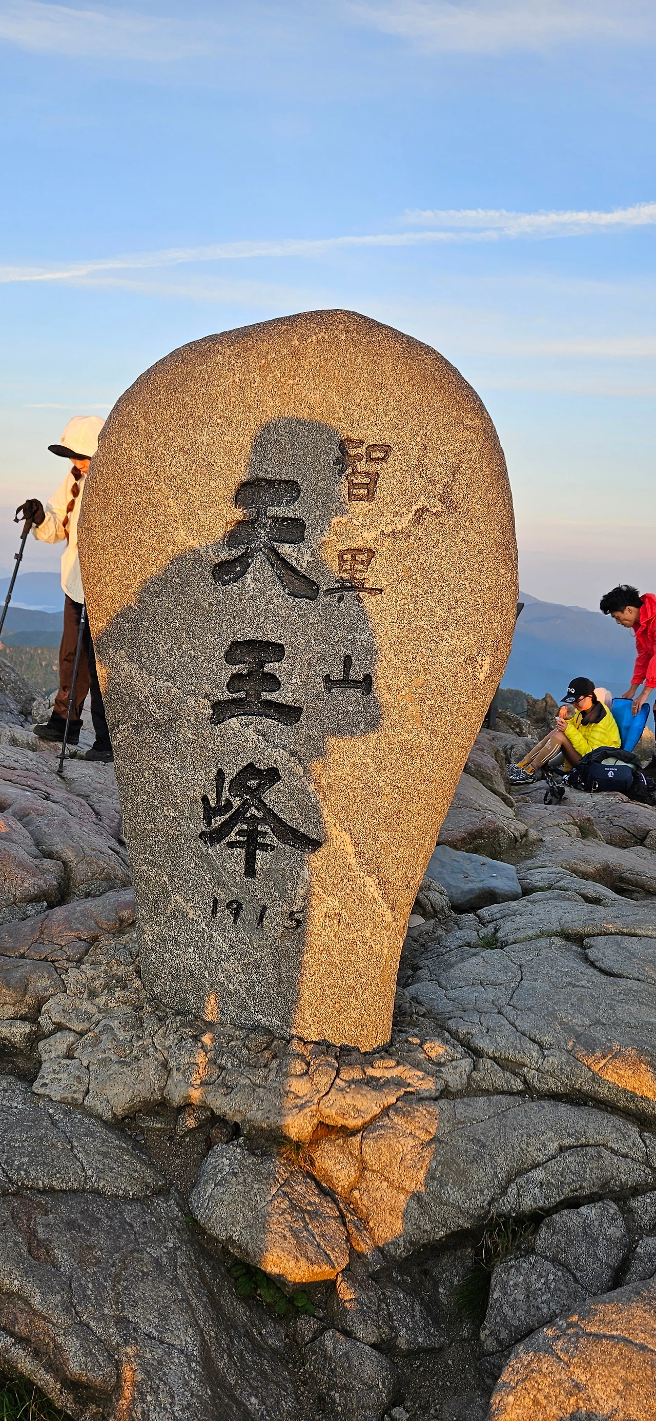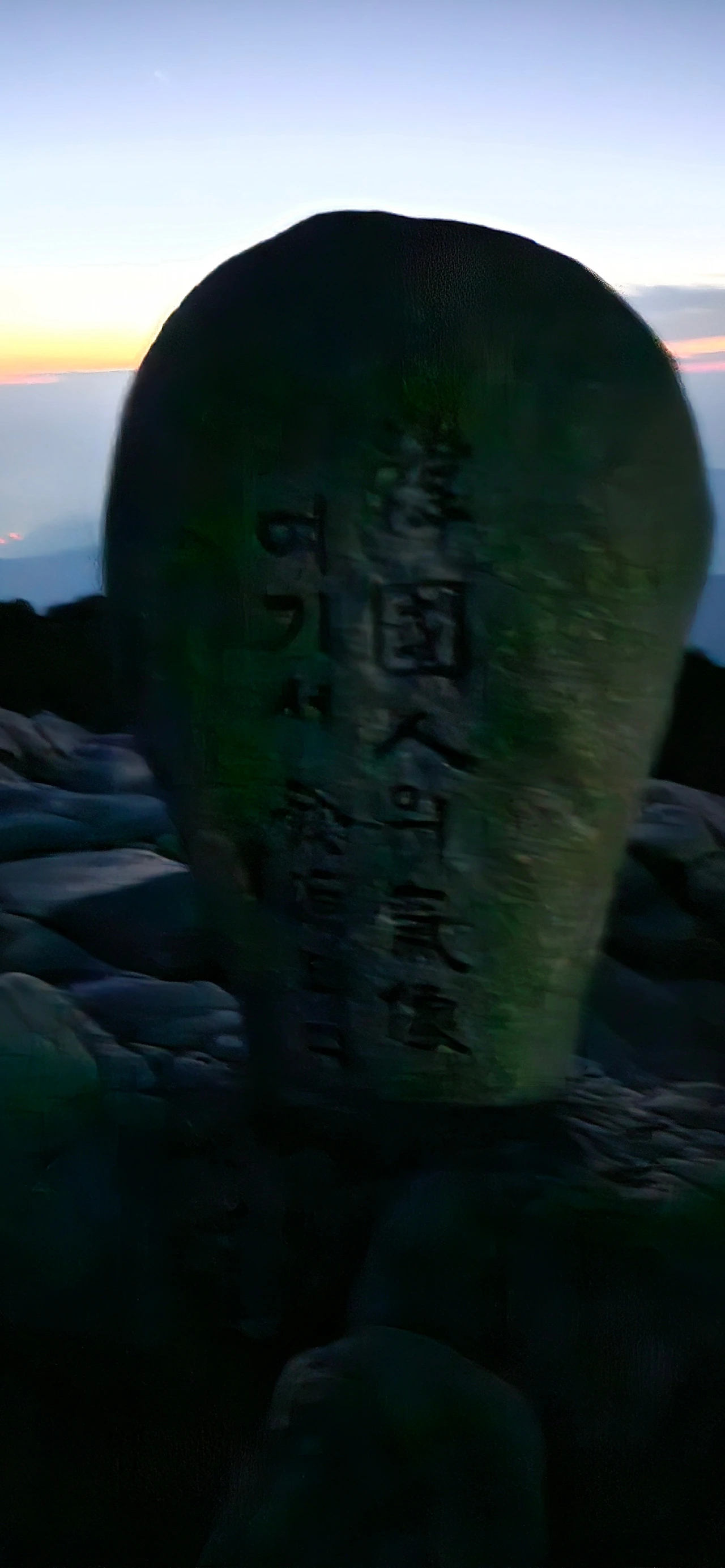 천왕봉에 도착하니 우리보다 일찍 온 사람들이 여름추위를 이겨내고 있다. 여름에 무슨 추위냐 하겠지만, 천왕봉은 1915m이다. 그곳에서 불어오는 바람은 차가운 기운을 그대로 갖고 있다. 그래서 여름산이라도 방풍재킷을 가지고 올라가는 것이다. 보온을 하는 것이다. 노고단에서 본 사람들이 보인다. 그들도 우리들과 같이 2박 3일 걸은 사람도 있고 어떤 사람들은 어제 이곳 천왕봉을 왔다가 일출을 보기 위하여 다시 온 사람도 있었다. 3대가 덕을 쌓은 사람들이 모여 있다고 하여도 좋을 것이다. 서로가 기운을 북돋우고 있다. 그리고 좋은 말만 한다. 지리산 정상석을 두고 인증샷을 남긴다. 순서를 기다려서 천천히 인증을 한다. H는 이상하게 다른 욕심은 없는데 사진에 대한 욕심이 많다. 좋은 사진을 만들어보고자 하는 생각이 있다. 그리고 잘 정리하여 20장만 남기고 삭제한다. 그렇게 열심히 사진을 찍으면서 결론은 20장만 남기는 것이다. 사진을 찍을 때도 흔들림을 방지하기 위하여 음성으로 촬영을 한다. 그래서 그 음성모드를 우리는 2박 3일 동안 들어서 '별명'으로 정리하였다.