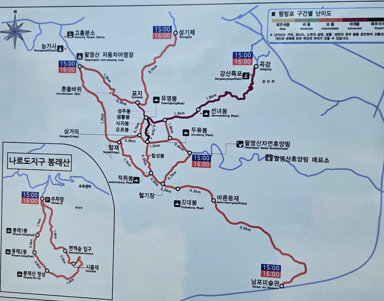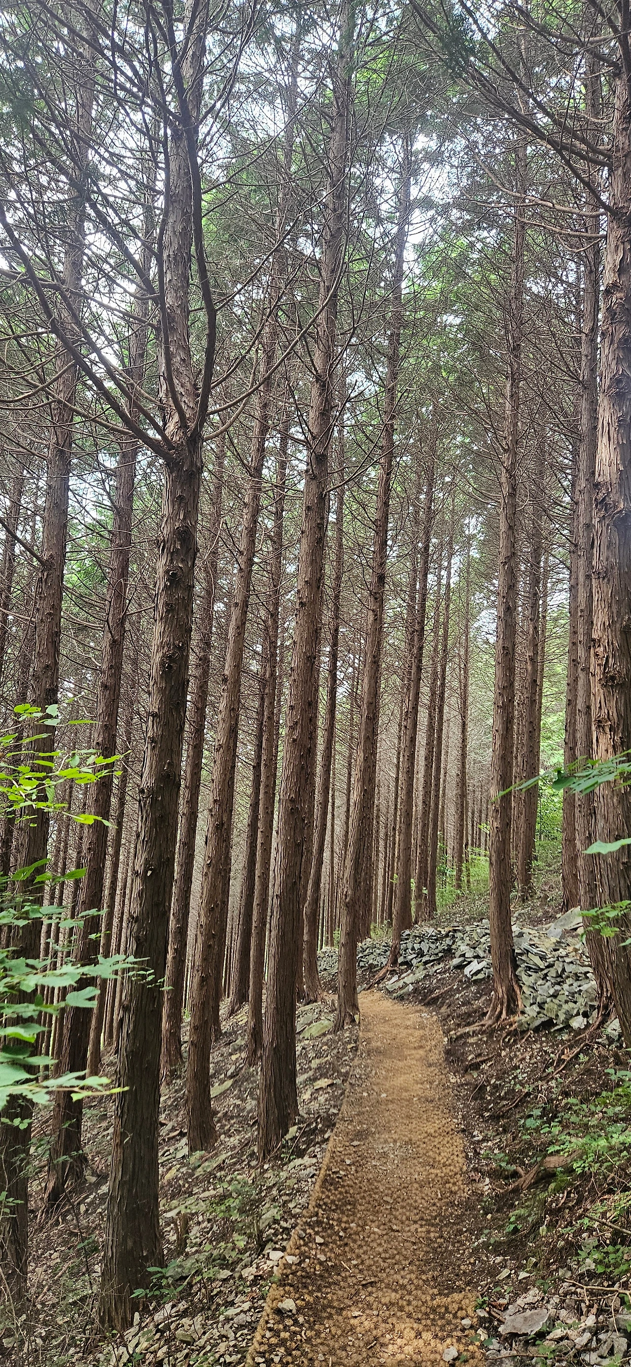 하산을 하면서 편백숲을 보았다. 장성의 축령산의 편백림이 있지만, 이곳도 만만치 않았다. 고흥에서 편백림을 활용한 최적의 산림 치유공간을 제공하고 웰빙·힐링 시대 국민건강증진 및 삶의 질 향상을 위해 팔영산 자락에 조성하고 있다고 한다. 이곳에서 그 숲을 걸었다. 여름날 피톤치튼으로 내 피로를 해소한다. 천천히 하산을 하면서 피로를 해소하여 더욱 좋았다.