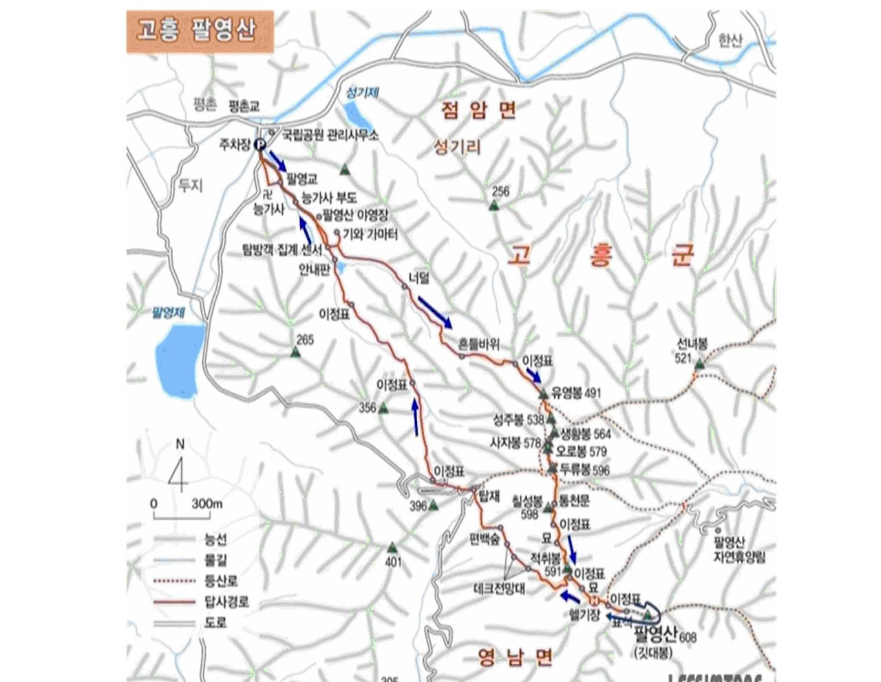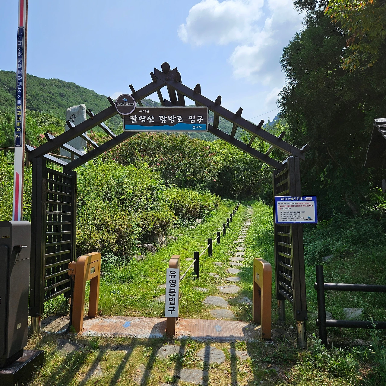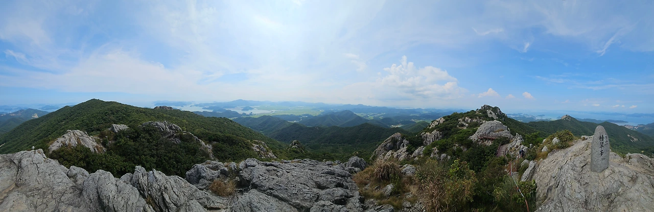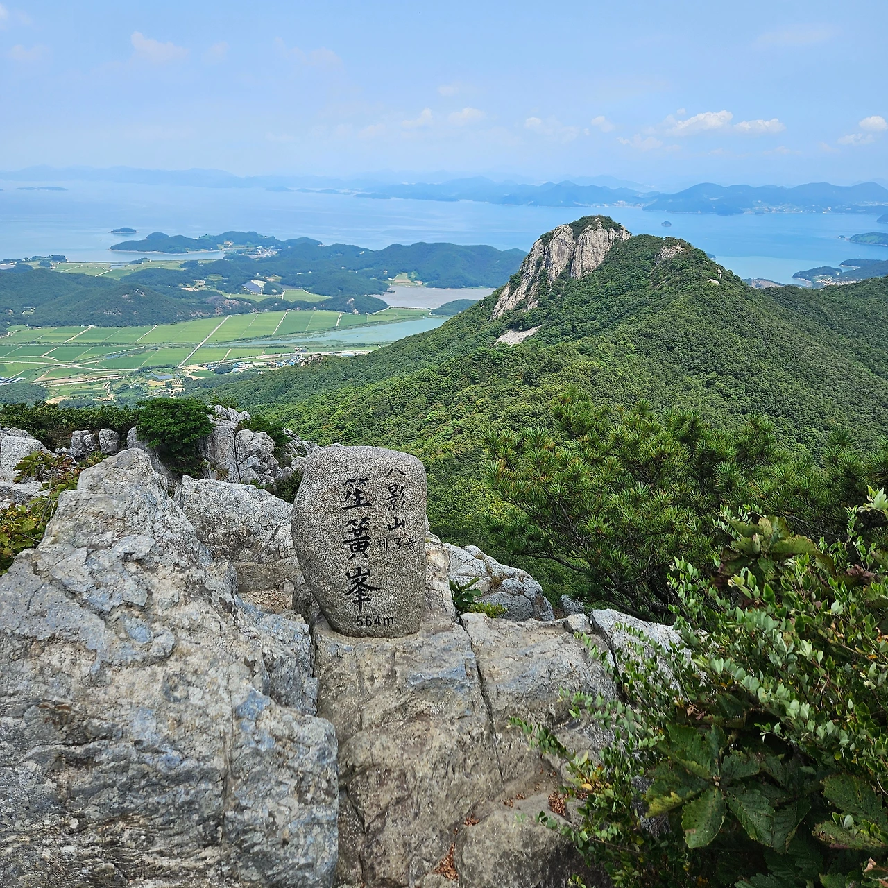 멀리 팔영산의 그림자가 보인다. 그 봉우리가 오묘하다. 지나가면서 슬쩍 사진으로 담았는데 마지막에 깃대봉을 가면서 사진을 담는 것이 보다 명확히 팔영산을 담았다고 할 수 있다. 버스는 능가사 주변에 있는 주차장에 주차를 한다. 버스에 내려서서 얼마나 더울까 하였는데 생각보다 덜이다. 바닷바람이 불어서 그런지 폭염처럼 느끼지는 못한다. 능가사는 내려오면서 한번 보기로 하고 팔영산을 바로 간다. 팔영산이라는 이름은 여러 가지 설이 있지만, 고흥군 홈페이지에서 찾아보니 이렇다. 팔영산의 본디 이름은 팔전산(八顚山)이었다. 중국 위왕의 세숫대야에 그 봉우리가 비친 고사에서 그림자 영(影)을 쓴 팔영산이라고 주로 부르고 있으며, 김정호의 대동여지도에는 신령할 령(靈)으로 표기되어 과거 신령한 산으로 팔령산이라고도 했다고 한다.