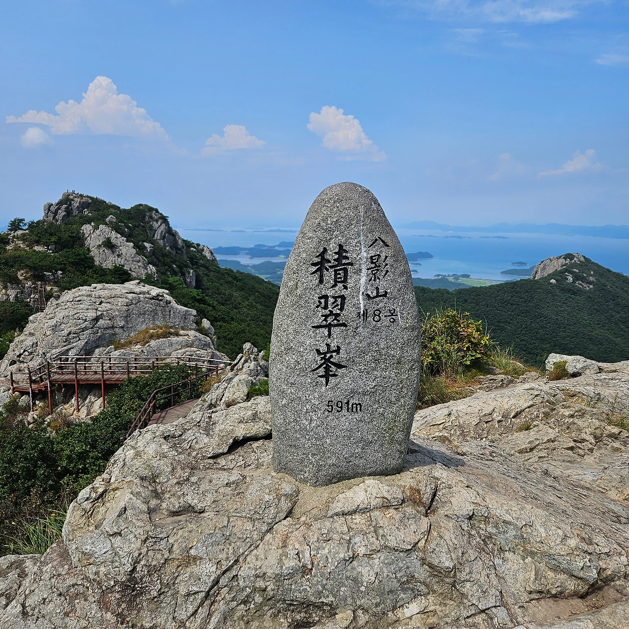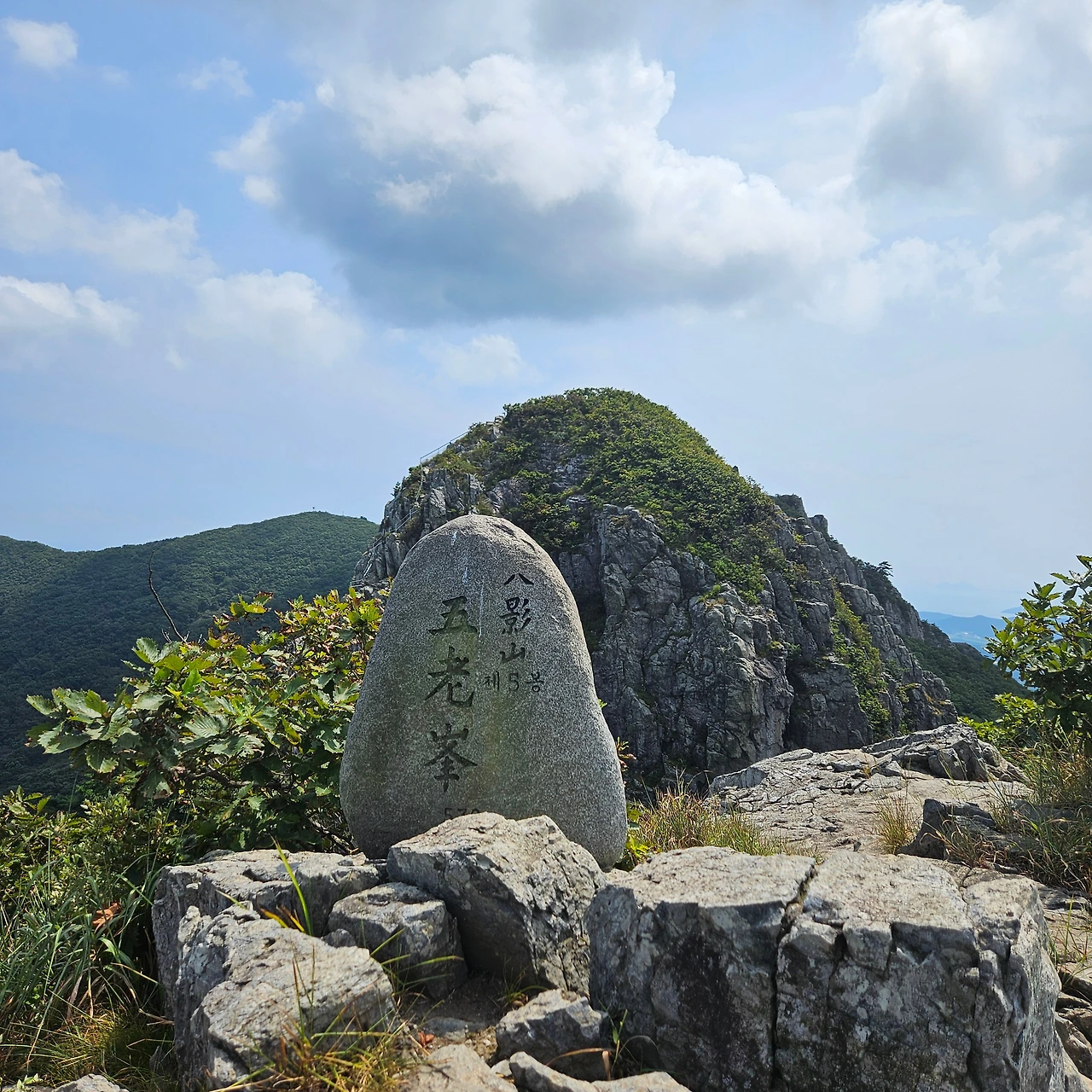 유영봉에 대하여 국립공원공단은 "유달은 아니지만 공맹의 도 선비례라 유건은 썼지만 선비풍채 당당하여 서비의 그림자를 닮아 유영봉이 되었노라"라고 소개하고 있다. 유건모양의 봉우리란 것이다. 그 봉우리를 오르고 내려오면 다시 2봉인 성주봉을 가야 하지만 그늘에서 많은 사람들이 휴식을 취하고 있다. 해발 1m 내외에서 490m 가까이 1시간 정도에 올라오면서 힘들었던 사람들이 1봉을 오르고 2봉으로 가기 전에 휴식을 취하는 것이다. 그리고 우리와같이 늦은 시간에 등산을 시작하는 사람들은 허기진 배를 이곳에서 채우는 것이다. 그래야만 2봉부터 8봉까지 무사히 걸을 수 있는 것이다.