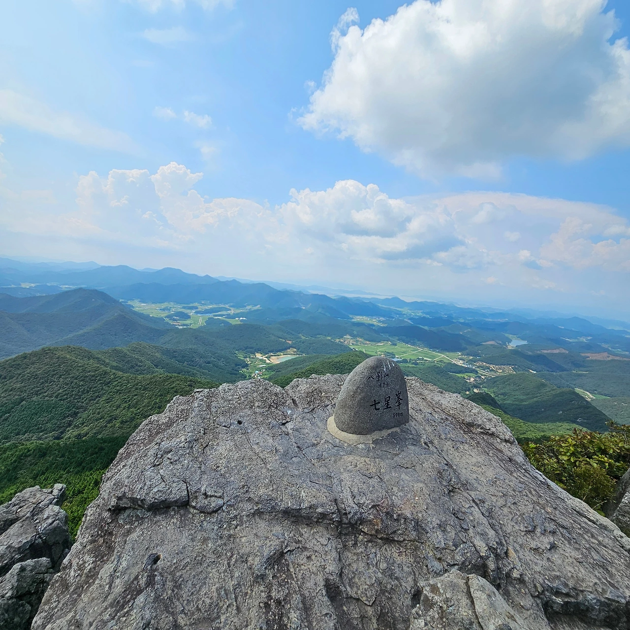 7봉은 칠성봉이다. 6봉을 내려가서 그늘을 안고 조금 걸으면 통천문이 나타난다. 그 통천문을 지나서 오르면 7봉 정상이다. 7봉 정상을 가기 전 뒤를 돌아보면 6봉이 보이고 그 옆에 있는 암릉도 보인다. 칠성봉에 대한 설명을 보면 "북극성 축을 삼아 하루도 열두때를 북두칠성 자루 돌아 천만년을 한결같이 일곱 개 별자리를 돌고 도는 칠성방위"라고 설명이 되어 있다. 이곳에서 8봉과 깃대봉을 동시에 담을 수 있고 다도해의 다양한 섬이 같이 들어온다는 것이다.