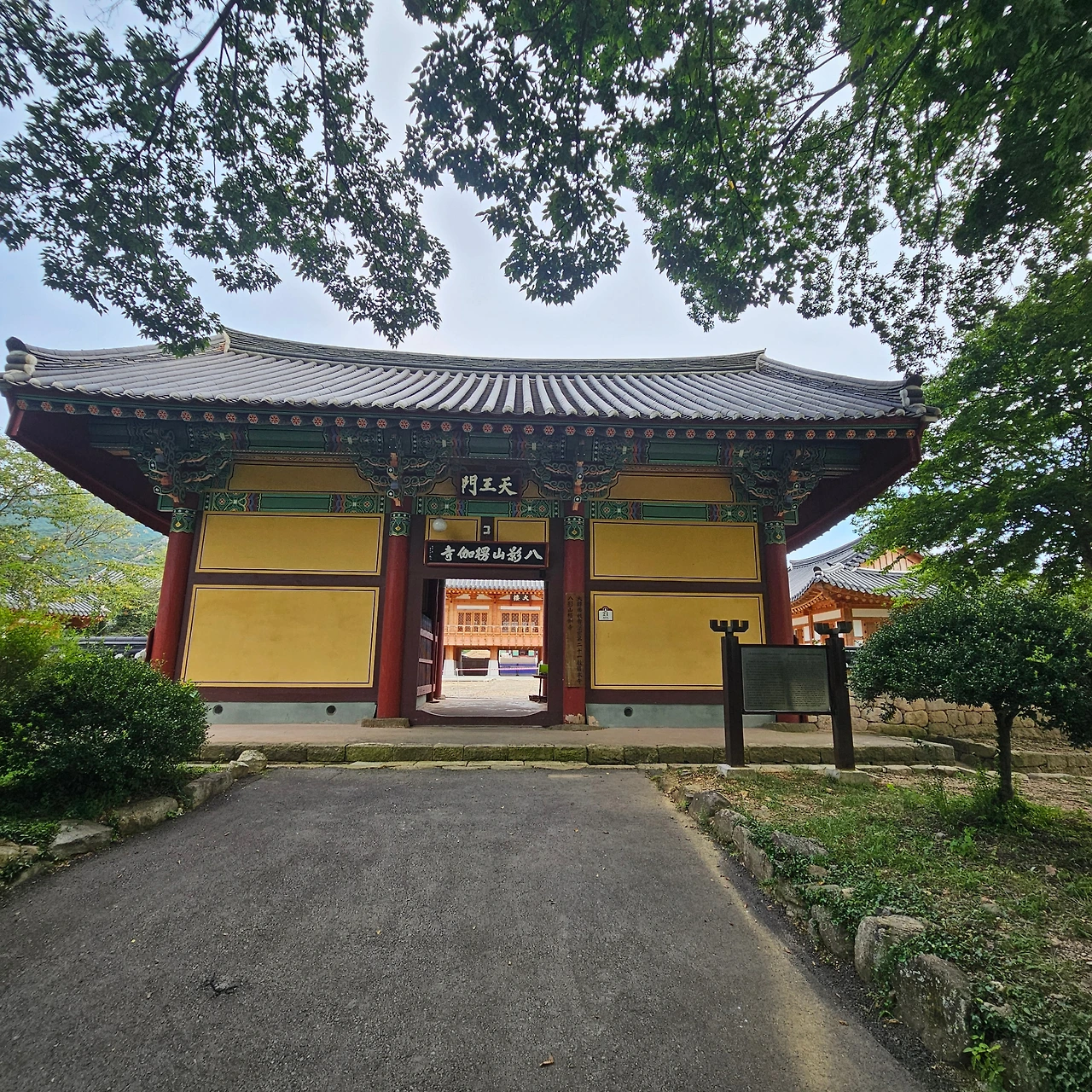 그리고 야영장이 끝나는 지점에 있는 무인점포에서 무엇인가를 구매하고 능가사로 방향을 잡고 걷는다. 능가사는 417년 아도화상(阿道)께서 창건하여 ‘보현사(普賢寺)’라 하였다. 임진왜란 때 모두 불탄 뒤 조선 인조 22년(1644년)에 벽천(碧川) 정현대사(正玄大師)가 중창하고 능가사로 이름을 바꾸었다고 한다. 현존하는 당우로는 정면 5칸, 측면 3칸에 팔작지붕을 한 보물 제1307호로 지정된 대웅전을 비롯하여 응진당·종각·천왕문(天王門)·요사채 등이 있다. 문화재로는 350여 년 전에 나무로 만든 뒤 개금한 불상 8위와 나무로 만든 뒤 도분(塗粉)한 불상 22위, 보물 제1557호로 지정된 높이 157㎝의 범종(梵鐘)과 전라남도 유형문화재 제224호인 4.5m의 목조사천왕상(木造四天王像), 귀부(龜趺) 위에 세워진 높이 5.1m의 사적비(事蹟碑)가 전라남도 유형문화재 제70호로 지정되어 있다. 사적비는 1726년(영조 2)에 건립한 것으로 불교의 유래와 절의 역사를 기록해 놓은 귀중한 자료이다. 전설에 의하면 이 비석은 원래 탑 앞에 있었는데, 덕목이 도술을 부려 절 뒤로 옮겨놓았다고 한다. 이 밖에도 절의 경내에는 광희(廣熙)·사영당(泗影堂)·추계당(秋溪堂) 등의 부도(浮屠) 8기가 있다.(출처: https://www.neunggasa.org/5 [고흥팔영산 능가사:티스토리])