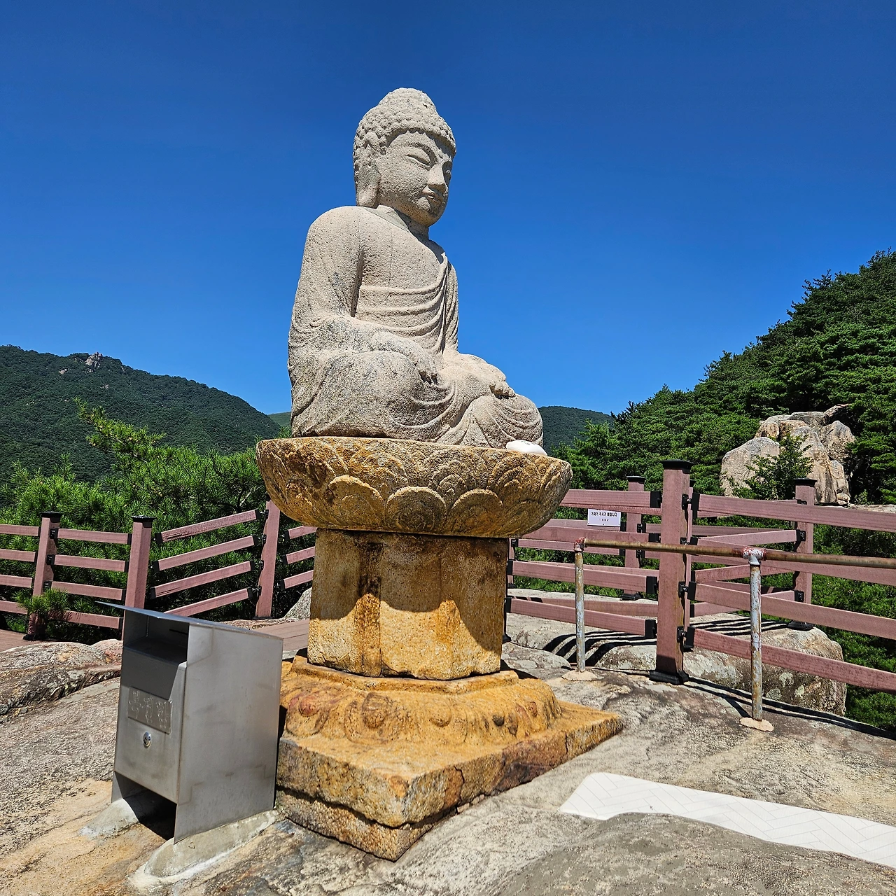 석조여래좌상까지 오른 시간이 1시간이다. 이제 한 번쯤 휴식을 취하면서 석조여래좌상도 보고 주변을 둘러본다. 그리고 올라야 하는 길을 생각해 본다. 이곳까지는 일반인들도 많이 오는 곳이고 정비가 잘 되어 있다.