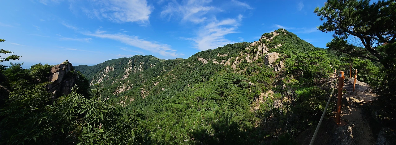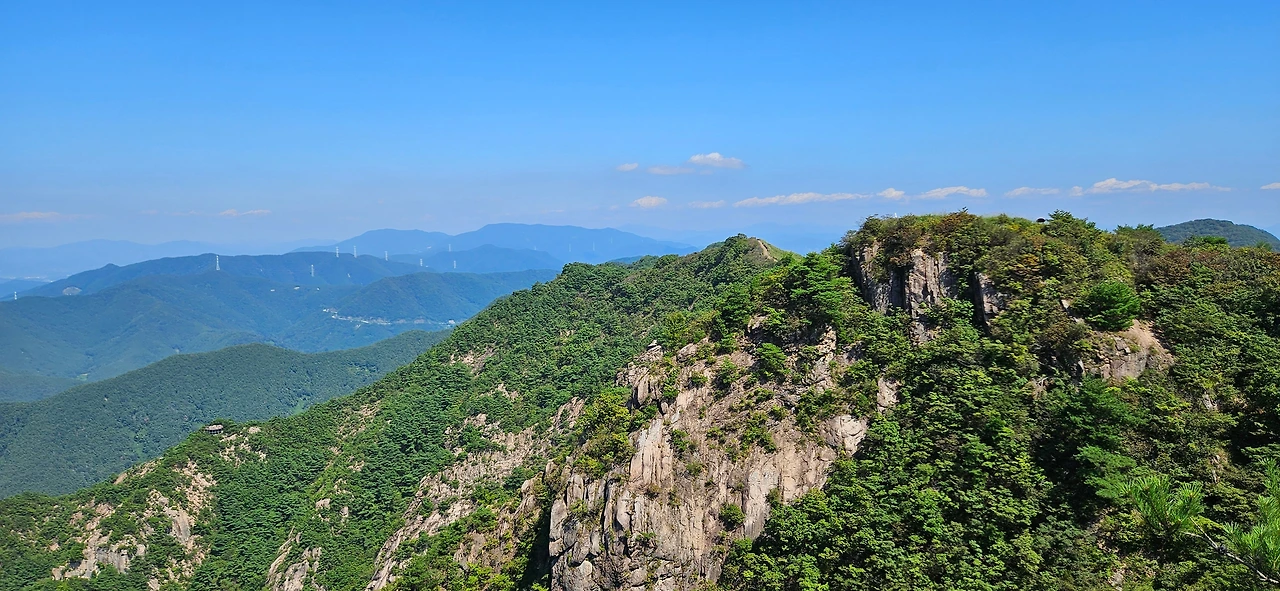 석조여래 좌상으로 유명한 용선대는 천년을 이어 온 통일신라시대의 불상이다. 보물 295호로 지정돼 있으며 아래에서 보면 까마득한 벼랑길이다. 바로 능선에 붙어서 관룡산으로 오르는 것이다. 오르면서 구룡산의 암릉지대를 쳐다본다. 왕복 1시간이라고 하였는데 하면서 아쉽게 생각하지만, 여름날 욕심은 금물이다. 이제 관룡산 정상을 향해 가는 바짝 오르는 가파름의 시작이다. 여름날 더위속에 가을이 다가오고 있다는 것을 느끼면서 산을 오른다. 폭염 속에 오를 때는 더운 바람이 뒤에서 불어오고 땀이 흥건하였으나 오늘은 그늘 속에는 시원한 바람이다.