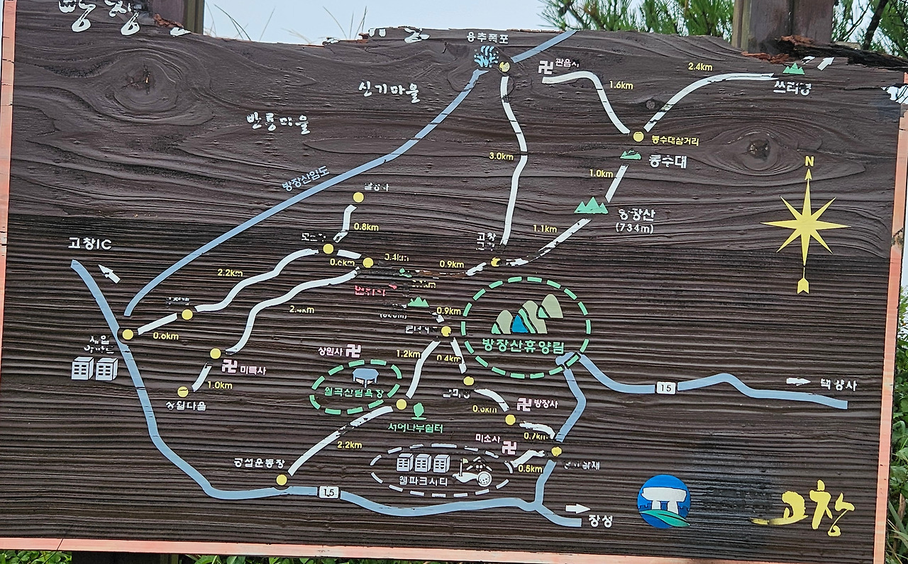 이제는 비가 오지 않는 길을 걷는 것이다. 그래도 기상청 앱을 보니 하늘은 비가 곧 올 것 같다. 1-2시간 이내에 다시 비가 올 것 같다. 서두른다. 봉수대에 도착하여 주변을 돌아보고 700m 남았다는 방장산 정상으로 발길을 돌린다. 봉수대를 올라서는 봉수대지기는 이렇게 매일같이 올라왔으면 힘들었을 것 같다. 해발 700m를 고창읍성 주변에 살면서 오르내리기는 쉽지는 않았을 것이다. 이곳이 최고의 명소인데 아무것도 보이지 않는다는 것이 아쉽다. 그렇게 봉수대를 지나고 방장산 정상에 도착하였다.