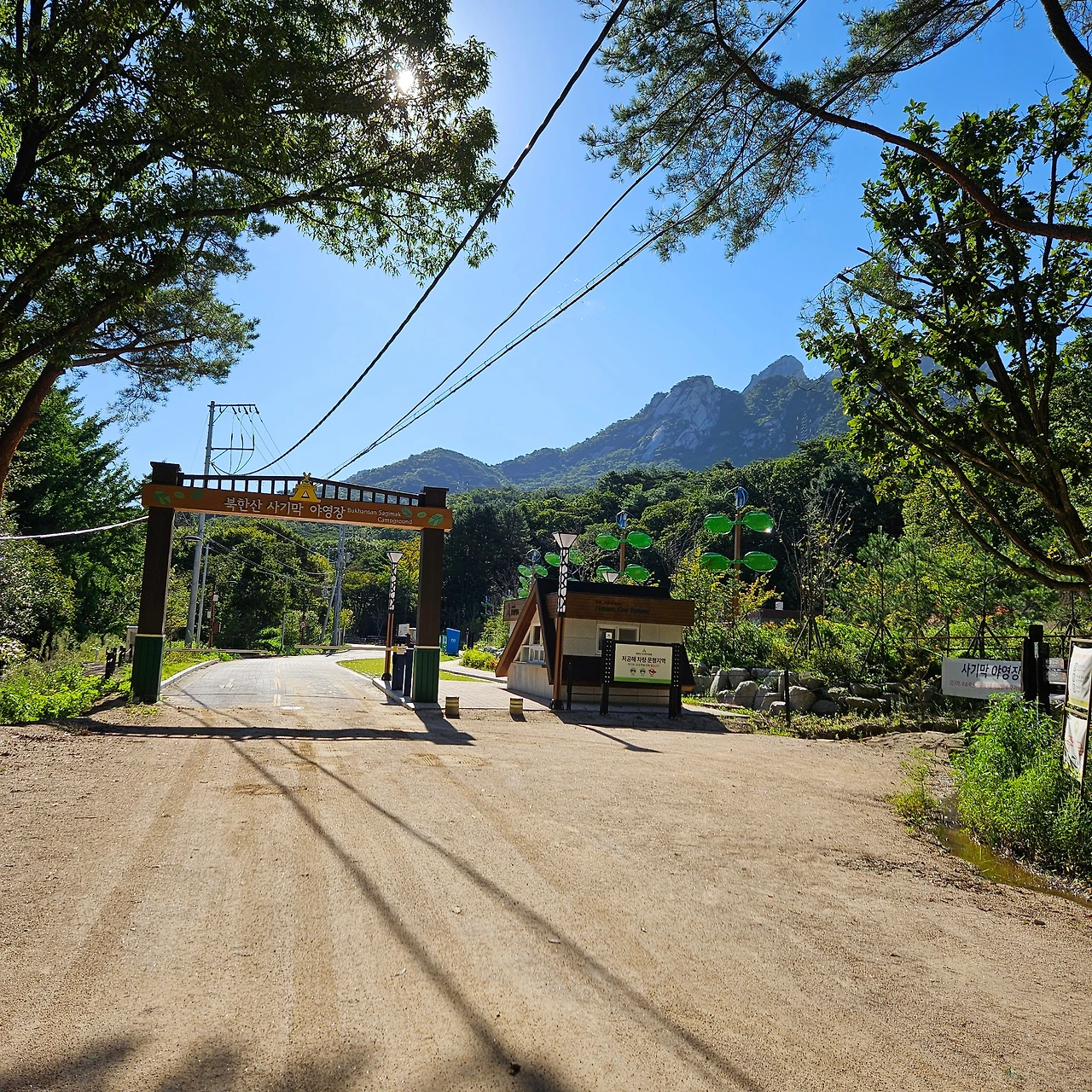 버스는 등산객도 보인다. 북한산성입구 등 등산로에 하차하여 산으로 가는 등산객을 내려주고 달린다. 은퇴한 사람과 은퇴를 바로 앞에 둔 사람, 오늘이 비번인 사람 셋이서 북한산을 가기 위하여 버스에서 내린다. 그리고 사기막골로 들어간다. 예전에 사기막골 끝에는 군부대가 있었으나 그 부대가 철수를 하고 야영장이 되어 있다. 그 끝에서 오른쪽으로 둘레길이 되어 있다. 사기막골 야영장 앞에서 숨은 벽 능선과 백운대, 염초봉이 동시베 보이는 지점에서 북한산을 담는다. 그 야영장에는 친환경자동차만 들어갈 수 있다. 그러면, 전기차가 불이 나면... 어떻게 될까 고민이다.