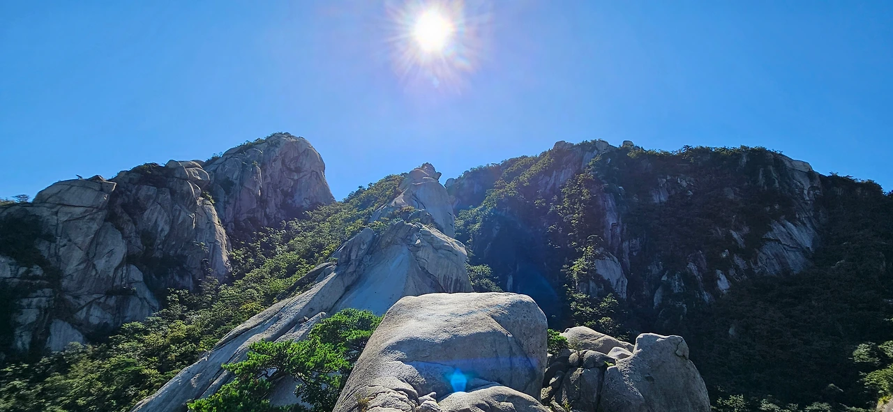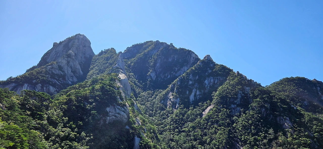 이제 숨은 벽 능선인 사기막 능선을 올라선다. 처음에는 평탄하게 천천히 능선길을 걸어서 올라간다. 능선길에 늘어 선 각종 나무들의 호위를 받으면서 산으로 오르는 것이다. 바위가 나타나면 이제는 달라진다. 가파른 산길이 시작되는 것이다. 어느쯤에서부터는 멀리 상장능선이 그리워지고 이웃한 염초봉이 가까워진 느낌이다. 이제는 가파르게 오른다. 바윗길을 이제는 데크로 정리하고 안전펜스를 설치하여 안전한 길을 유도한다. 가파르게 오르든 바윗길이 그리워지면 그 길로 안내를 한다.