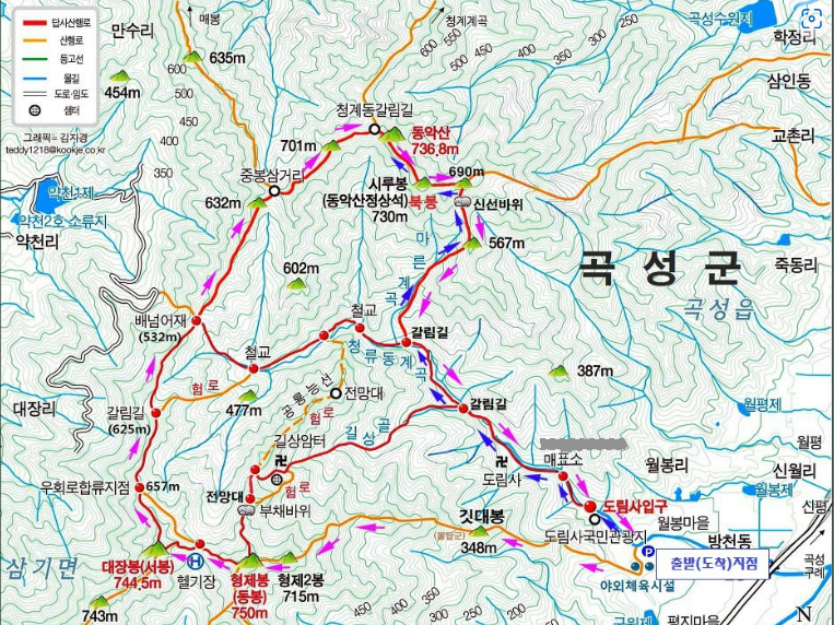 동악산은 나는 이렇게 생각하였다. 동쪽의 큰 산인 東岳山(동악산)이라고 생각하였는데 아니었다. 동악산에 대하여 이렇게 설명이 되어 있다. 신라 무열왕 때 원효가 길상암과 도림사를 세울 때 하늘의 풍악에 산이 춤췄다고 동악산이라고 한다. 이렇게 이정표에 설명이 되어있다. 그리고 한자로 動樂山(동악산)이다. 재미는 있다. 곡성군청에서도 설명하기를 풍악소리가 들려올 것 같은, 기분 좋은 산행 동악산(動樂山)이라고 한다. 마을 주민들은 곡성 마을에서 장원급제자가 탄생하게 되면 이 산에서 노래가 울려 퍼졌다고도 한다.