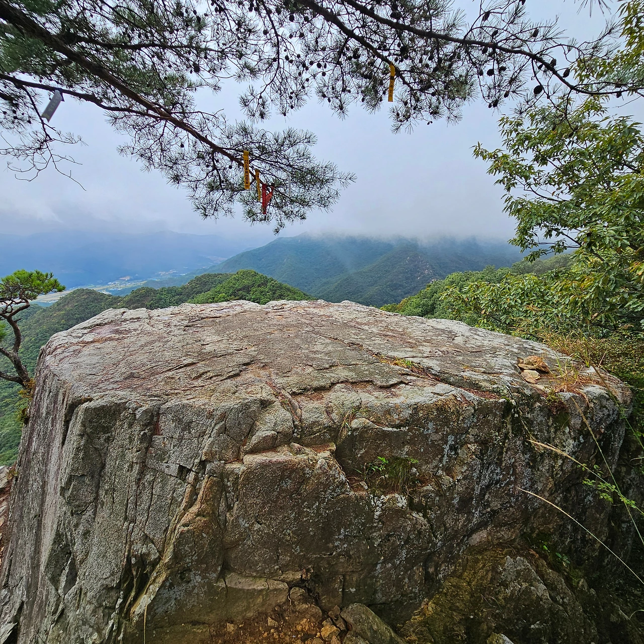 신선바위에 대한 아쉬움을 뒤로하고 내려가다 보니 다시 신선바위 갈림길이다. 그 아쉬움을 해소하기 위하여 신선바위로 간다. 신선바위에 대한 상상을 해본다. 어떤 사람은 신선의 모습, 나는 신선이 노는 넓은 바위라고 이야기한다. 그냥 추측을 하였는데 내가 상상한 것이 맞았다. 신선바위에 도착하니 우리에게 세상을 보여준다. 하늘은 흐렸지만, 구름은 저 위에 우리는 신선이 노는 세상아래에 있다. 그 넓은 바위에 앉아 바둑과 장기로 신선놀음을 하였다고 보면 될 것이다.