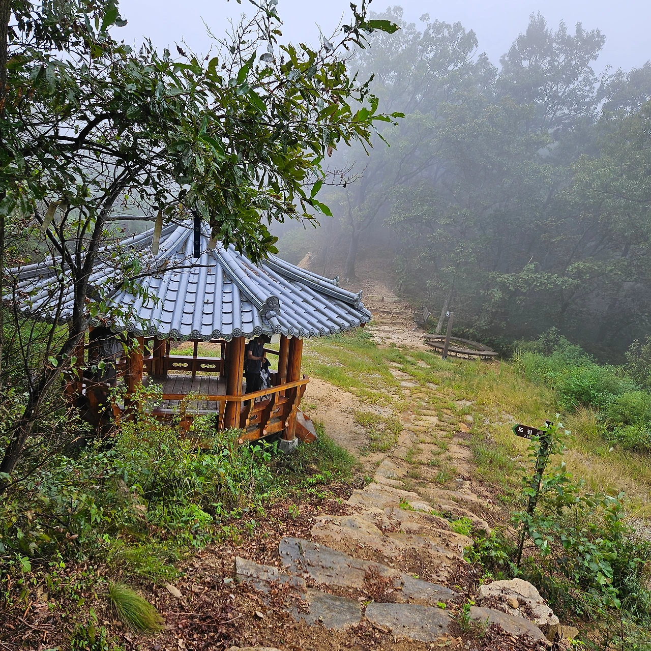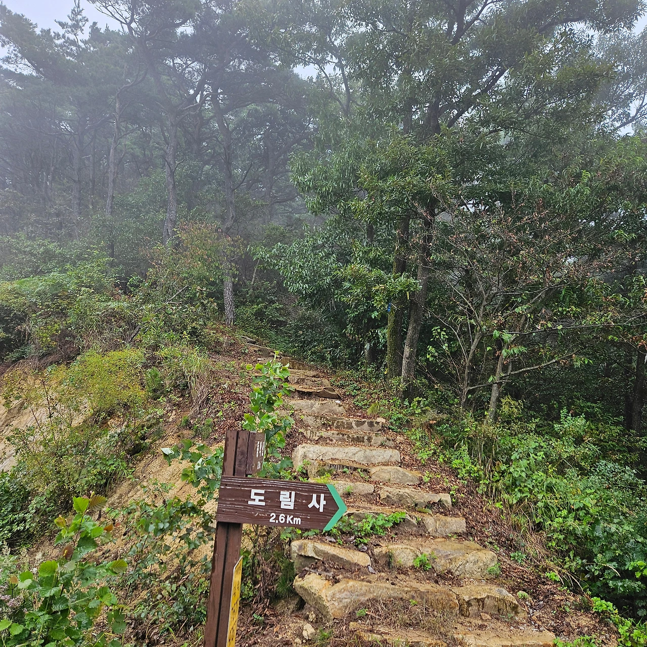 빗방울이 떨어지고 있다. 맞은편에서 등산객이 오면서 우리에게 묻는다.