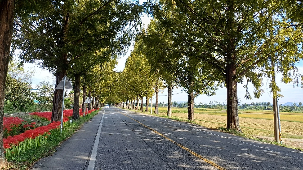 곡성에 들어서기 위하여서는 국도 17호선을 벗어나서 곡성으로 들어선다. 들어서면서 이런 곳이 있었어하면서 돌아본다. 들어서는 입구는 메타세과이어가 반겨준다. 그리고 그 옆에 요즈음 한창 꽃을 피우고 있는 꽃무릇이 붉은 꽃을 피우고 있다. 이런 곳을 찾았다는 것이 그저 즐거울 뿐이다. 이곳에 있는 동악산을 찾아가는 것이지만, 곡성을 들어가면서 그 길이 너무나 감동적이다. 꽃무릇 상사화의 밭을 그대로 보았다는 것이 좋다. 오늘 오후 돌아갈 때 비예보가 있어 길옆에 자동차를 세우고 메타세쿼이어길과 꽃무릇을 가득 담는다. 그 길을 지나다니는 자동차들은 그저 의미 없이 가는 것만 같은데 그렇지 않다는 것이 즐겁다.
