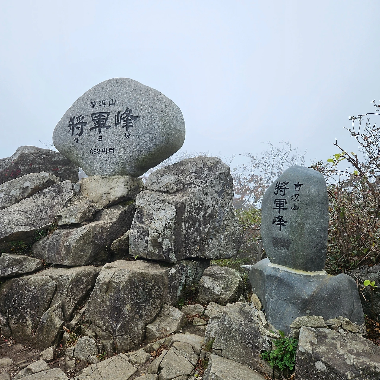 하산을 하면서 배바위가 있어서 올라보지만 이곳도 동일하다. 아무것도 보이지 않다. 곰탕 속에서 보이는 것이 없다는 것이 아쉽다. 장군봉에는 장군봉에 대하여 설명이 있다. 이 산이름이 청량산과 조계산으로 수시로 바뀌다가 1825년에 조계산으로 바뀐 이 후 지금까지 유지되고 있으며 장군이라는 단어에서 느낄 수 있듯 잔주름 없이 우렁차게 소아 좌우로 균형을 이루고 있기 때문이라고 한다.