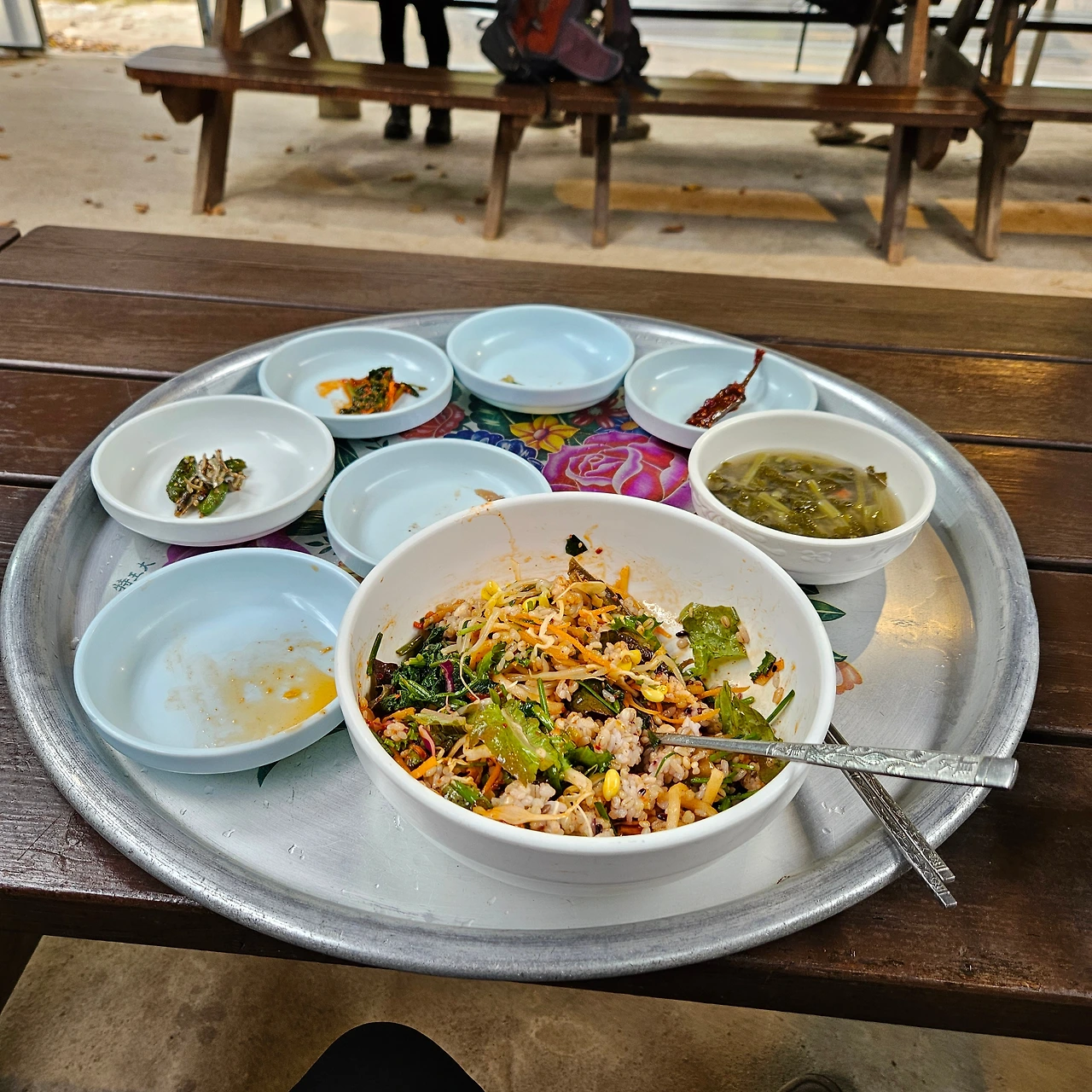 계곡을 만나고 다리를 하나하나 건넌다. 장박 1교, 장박 2교, 장박 3교다 옛날 삼국지에 장비가 장박교에서 조조의 대군을 방어한 것은 아니지만 모두들 하나하나 건너서 내려간다. 선암사 방향으로 가는 계곡을 따라 내려 걷다가 어느 순간 갈림길에서 송광사 방향으로 길을 잡고 걷다 보면 보리밥집이라는 이정표가 나타나고 윗 보리밥집이라는 집이 있고 원조 보리밥집을 가리키는 이정표가 있어 길을 따라나선다. 제일 윗집은 영업을 하지 않고 있어 삼거리에서 보리밥집으로 방향을 잡고 마음에 드는 보리밥집에 자리를 잡고 보리밥으로 점심을 해결한다. 보리밥집은 월요일, 화요일은 휴무라고 한다. 공휴일은 영업을 한다고 한다. 산행을 하면서 이렇게 보리밥을 먹는 경우도 드물어 많은 사람들이 찾고 있다고 한다. 윗집은 허영만의 식객에 나오고 아랫집은 백종원의 맛집에 나왔다고 한다. 자동차를 이용하여 접근도 가능하다고 하니 맛집이라고 하여야 할 것이다.