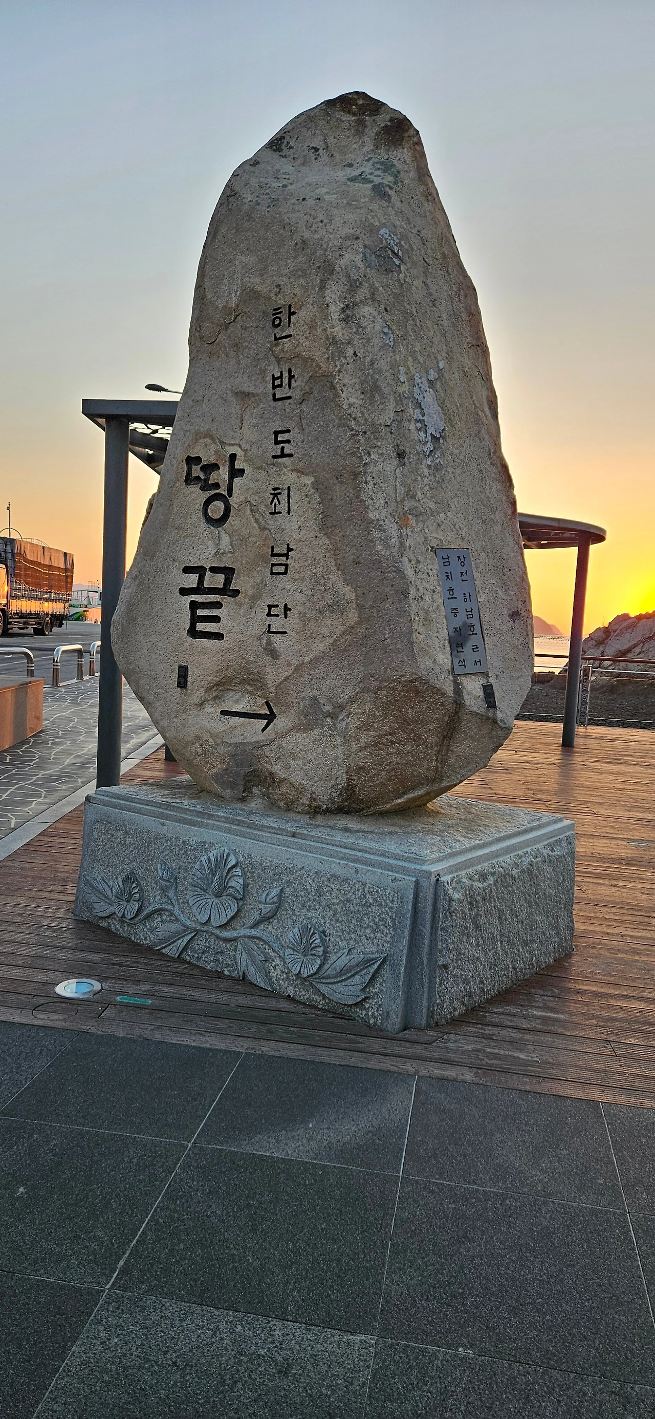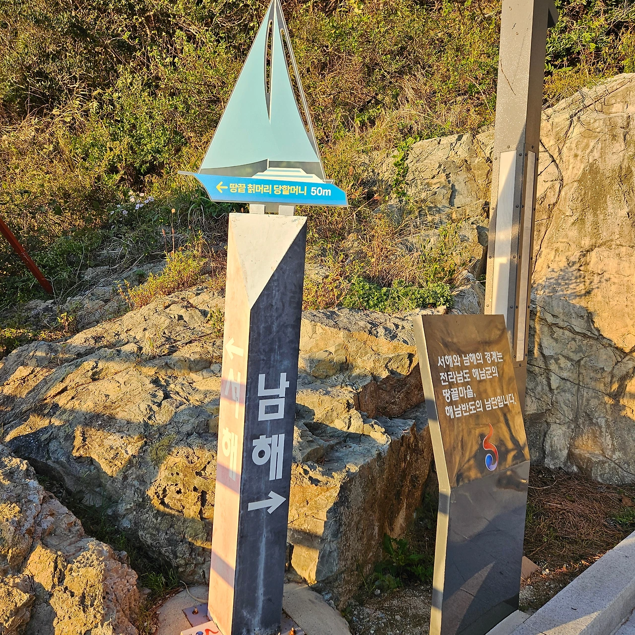 땅끝탑 바로 옆에 이렇게 표시되어 있다. 이곳을 경계로 서쪽은 서해, 동쪽은 남해라고 한다. 서해와 남해의 경계라 한다. 다음날 서해, 남해, 동해에 대한 토론의 주제가 되었다.