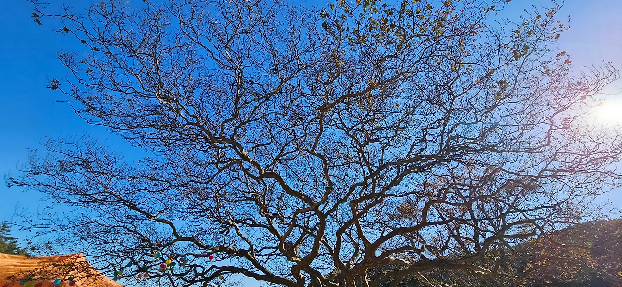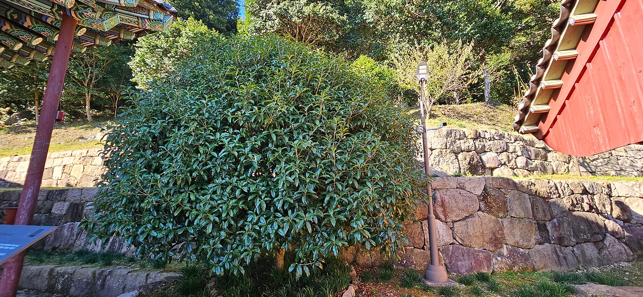 백련사를 보고 앞에 나오면 모두가 동백나무다. 백련사 주변 5.2ha 면적에 동백나무를 위주로 7,000여 그루의 나무가 군락을 이루고 있다. 동백나무와 함께 비자나무, 후박나무가 자라고 있으며 나무 아래에는 차나무가 자생하고 있다. 특히 3,4월경 붉은 동백꽃이 만개한 후 바닥에 떨어진 풍경이 장관을 이룬다고 한다. 오늘도 그 동백나무들 중 어느 나무에서는 계절을 잊은 듯 꽃이 피어 있다. 그리고 꽃을 피우기 위한 꽃망울이 곳곳에 보인다.