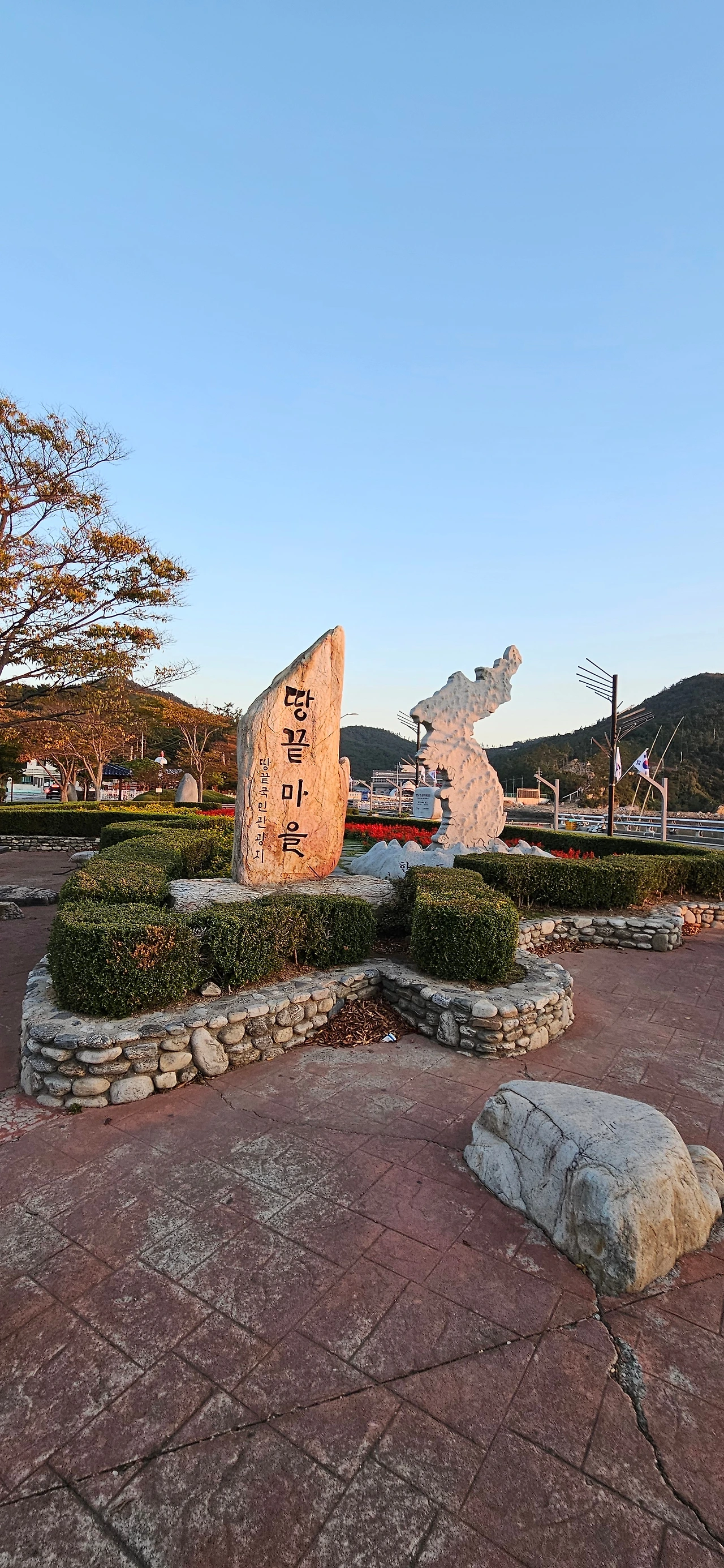 이제 숙소로 돌아내려간다. 갈두산 정상에서 하산을 어떻게 하냐 물으니 모노레일을 탑승하라고 하는데 우리는 걸어서 내려간다. 도로를 따라 천천히 내려간다. 계단보다는 거리가 좀 더 있지만, 계단을 내려가는 것보다 편안하게 내려갈 수 있어 우리는 그렇게 선택을 하였다. 도로가 끝나는 지점에 세계 각 대륙의 땅끝을 알리는 공원을 둘러보았다.