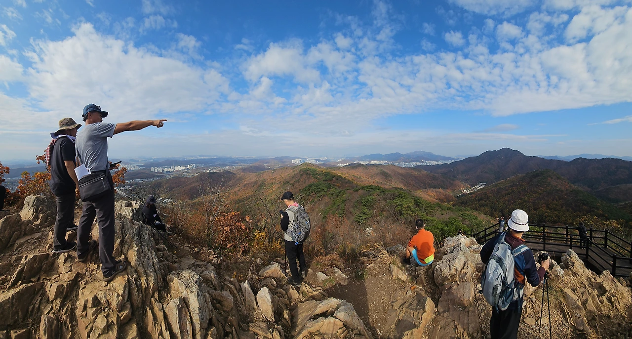 자동차를 가지고 전철역 인근에서 우리를 픽업한다는 J의 의견에 따라 모두 그 역으로 이동을 한다. 이번에 N산악회가 아닌 S산악회가 되었다. 산악회 명칭은 이동하는 차량에 따라 바뀌는 것이다. 전철역에 도착하는 시간이 10분 내외로 차이가 있을 뿐이다. 오늘도 자동차가 가장 먼저 도착하여 전철로 오는 사람들을 모두 태우고 이동한다. 안양의 병목안 시민공원 주차장에 주차를 시키고 관모봉으로 올라서 태을봉, 슬기봉, 수암봉을 거쳐서 원점회귀코스다. 13km 이상 되는 거리는 6시간 이내에 걸어보는 것이다.