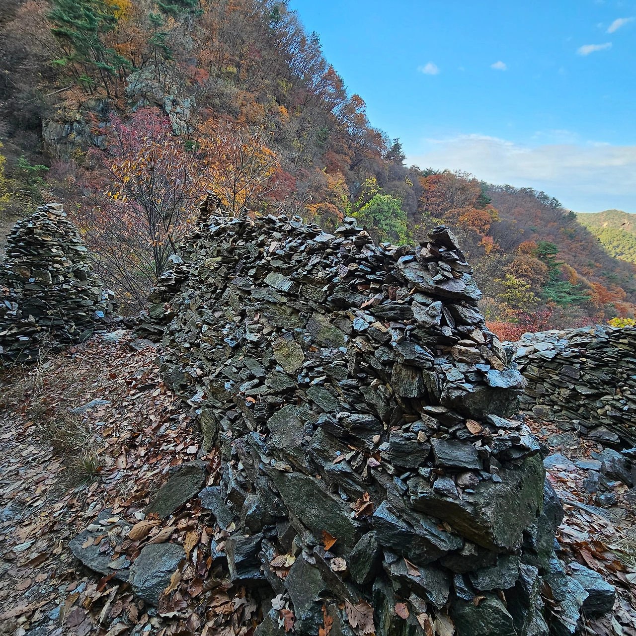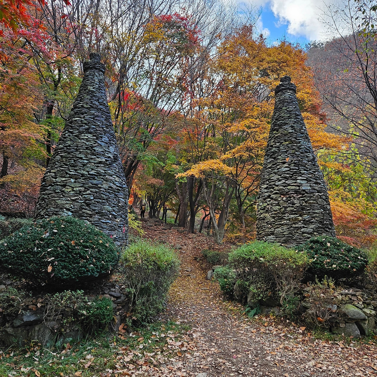 가을을 즐기면서 관모봉으로 가기 위하여 계곡 등산로를 오르다가 둘레길 같은 등산로를 선택하였다. 그 등산로를 따라가다 보면 돌의 향연이 펼쳐져 있다. 그 돌들을 모아서 탑을 쌓고 그 돌탑 위에 돌탑을 쌓은 모습이 있다. 그 모습을 보면서 돌탑을 쌓는 사람들이 있다. 돌탑을 쌓은 사람들은 자기의 마음을 다스리면서 돌탑을 쌓을 것이다. 돌탑을 쌓은 곳은 곳곳에 있다. 그중에 가장 유명한 곳이 진안의 마이산 돌탑, 구미의 금오산의 돌탑이다.