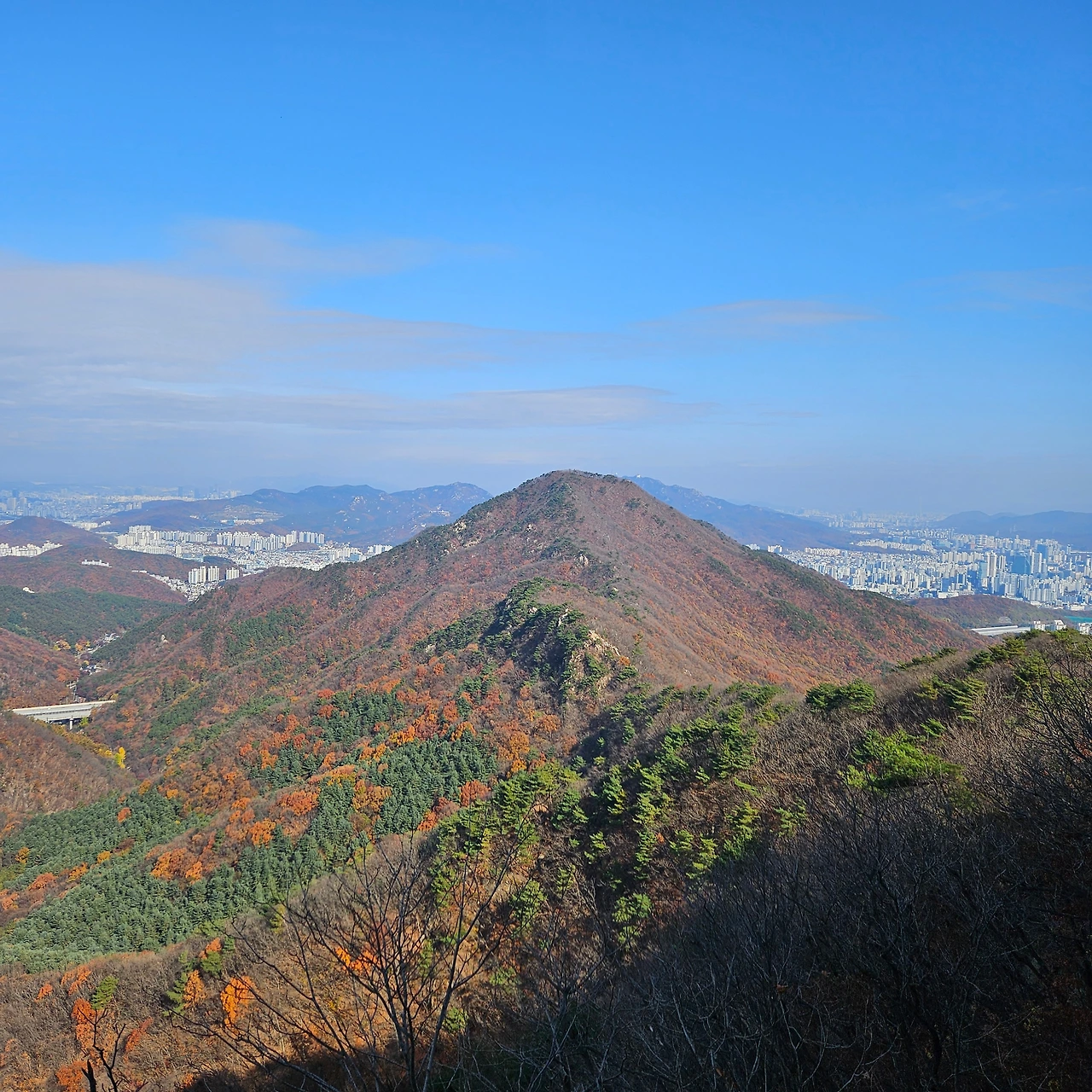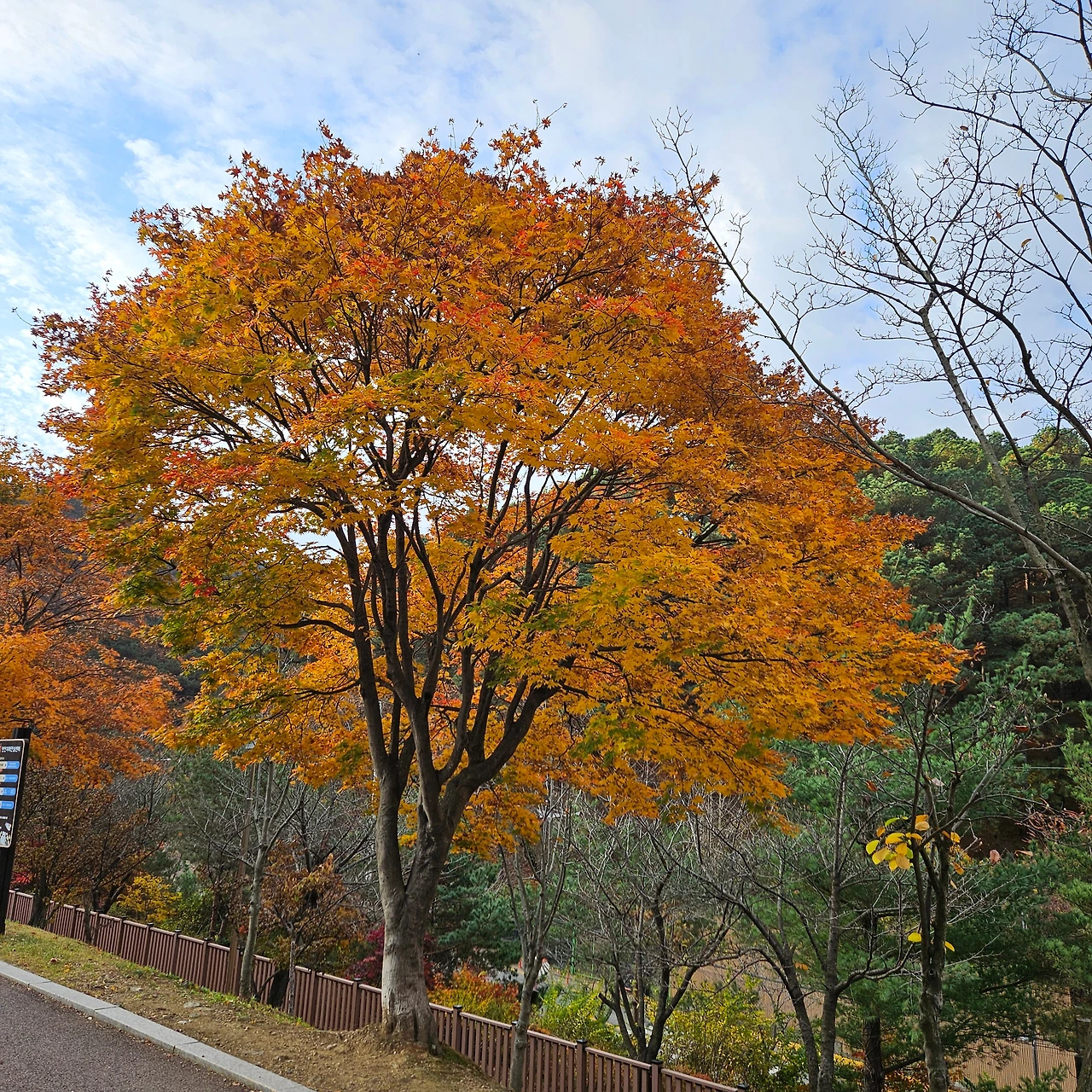 이제 산으로 간다. 병목안 시민공원의 나무들의 단풍이 서로서로에게 내가 더 붉다 내가 더 노랗다 하는 경연을 하고 있는 것 같다. 지나가는 산책객도 등산객도 그 경연의 현장을 하나하나 인생샷으로 보고 동참을 한다. 우리도 동참을 하면서 지나간다. 노랗게 물든 은행잎이 한차례 바람에 노란 잎을 바닥으로 보낸다. 그것이 만추의 모습이라고 할 것이다.