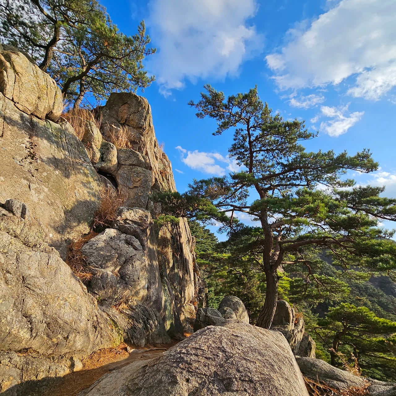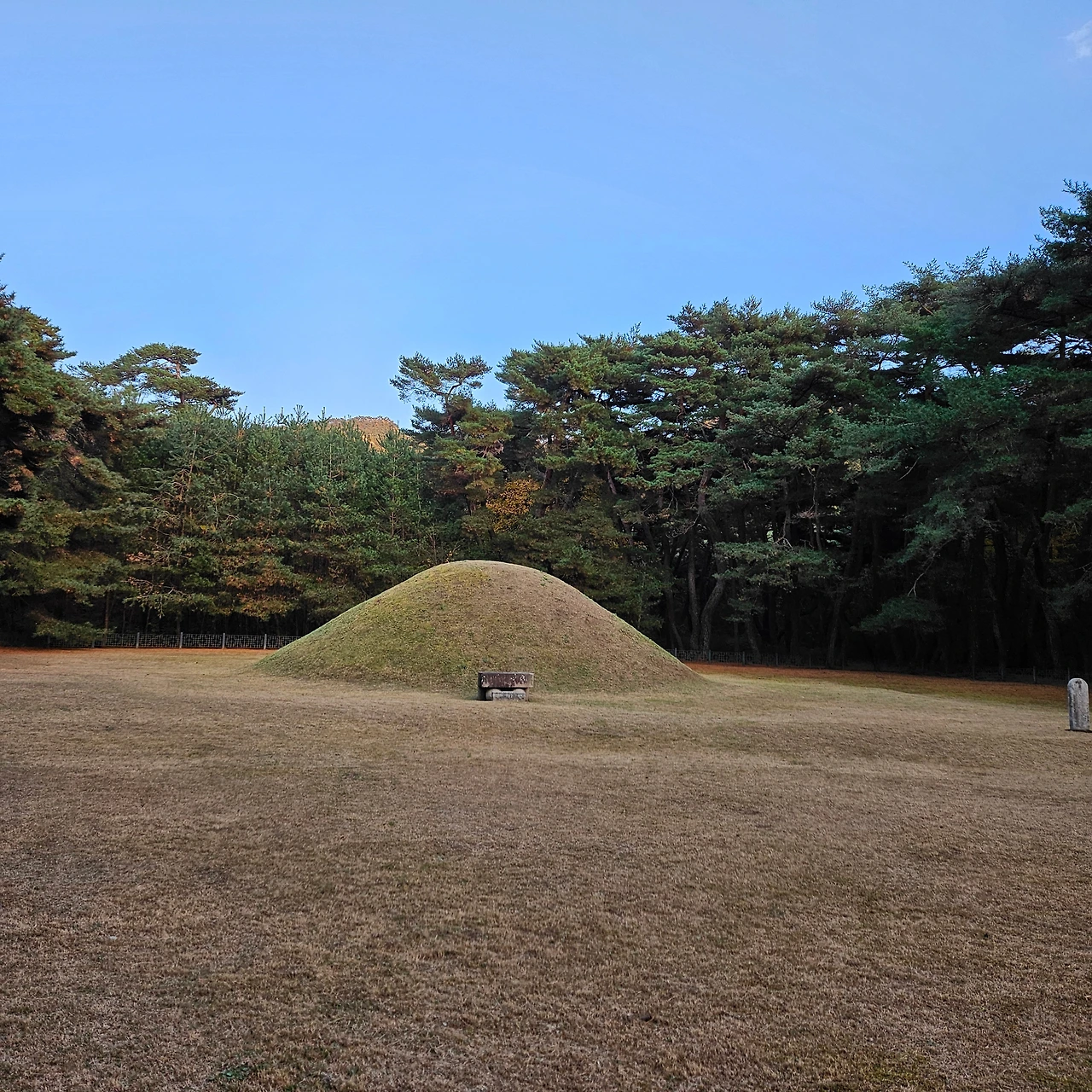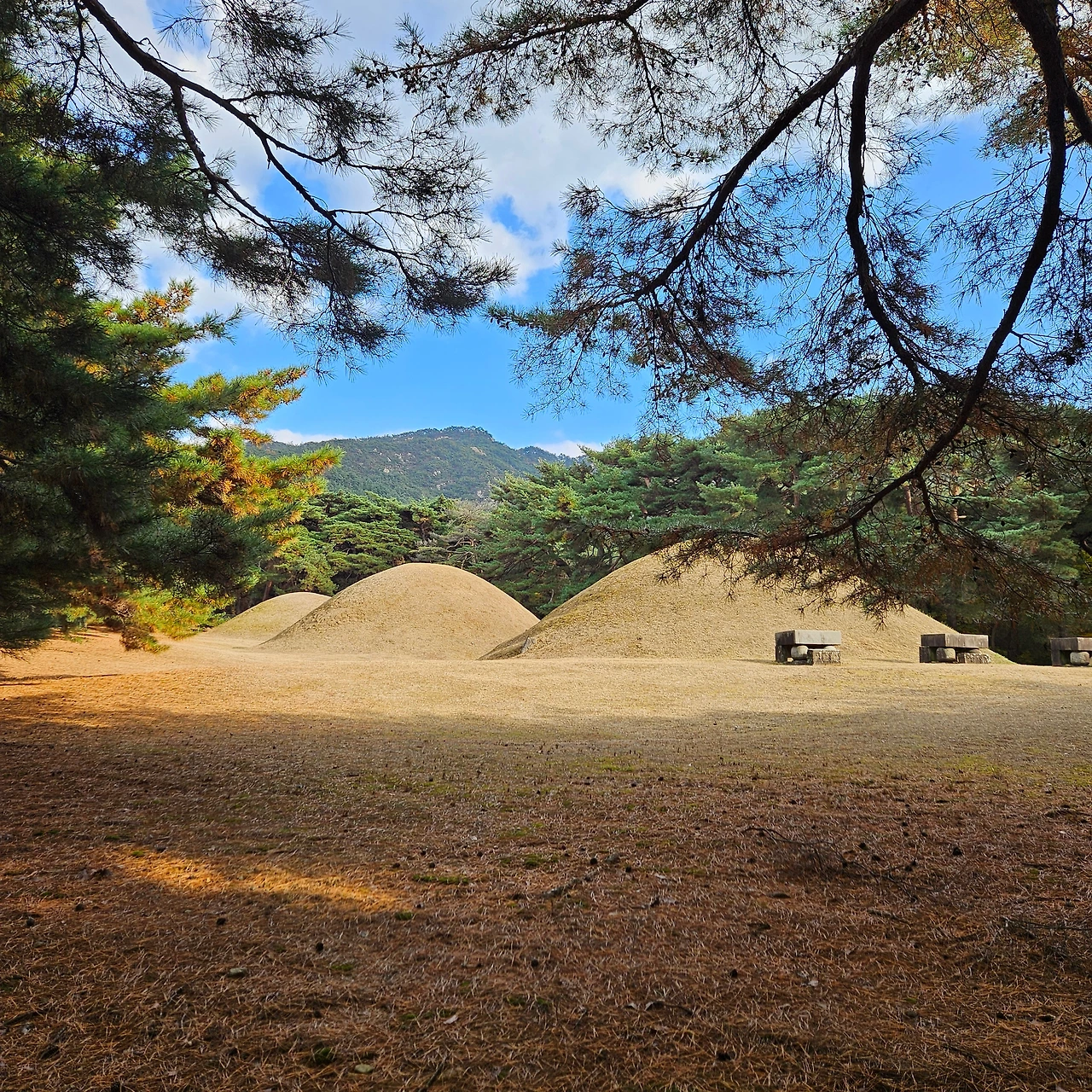 금오봉을 가는 길에 들어선다. 금오봉을 가는 길에 삼릉이 있어서 다가선다. 신라 8대 국왕 아달라 이사금 박아달라, 53대 국왕 신덕왕 박경휘, 54대 국왕 경명왕 박승영의 능이라고 전한다. 이 세 왕의 공통점은 모두 박 씨다. 신라의 왕들은 박, 석, 김 씨가 번갈아 가며 수행하였다고 한다. 이곳의 소나무 숲은 국내에서 가장 아름다운 소나무 숲으로 손꼽힌다고 한다. 동 소나무는 '안강형 소나무'인데, 경주 외 타지방에는 드물고 특이하게 생겼다. 특히 안개가 낀 날의 분위기는 신비롭다고 한다. 나도 한번 담아보았다.