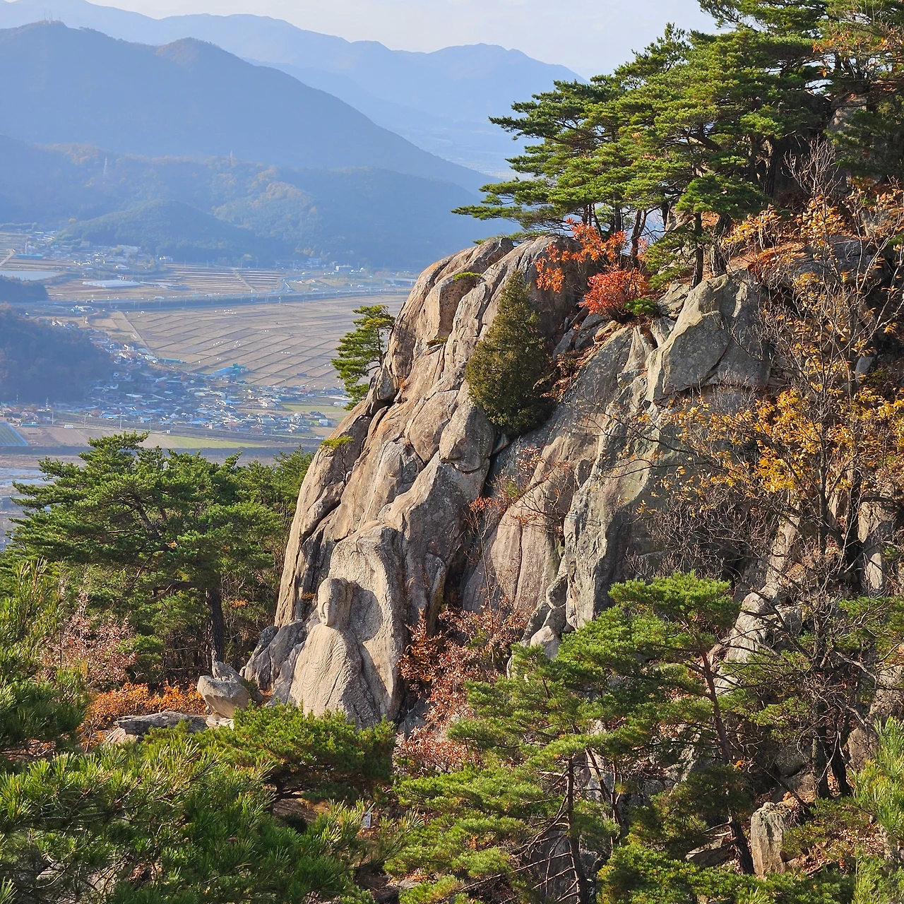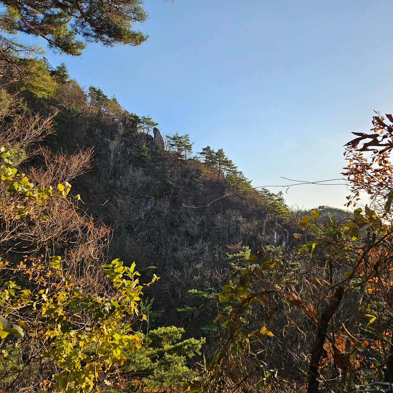 능선길을 걸으면서 금오봉으로 가면 된다. 금오봉을 가는 길에 마애석가여래좌상을 볼 수 있다. 그곳을 지나면 문화유산이 없다. 다만, 곳곳에 묘지 등을 없애고 국립공원을 복원하였다고 안내되어 있다. 금오봉 근처에 도착하면 화장실 안내도 있다. 정상에 화장실이 있는 곳은 드물지만 현실적인 모습이라고 할 것이다. 정상에 도착하여 경치가 거의 없지만, 약사골로 내려가기 바로 전 봉우리에서 멀리 볼 수 있다.