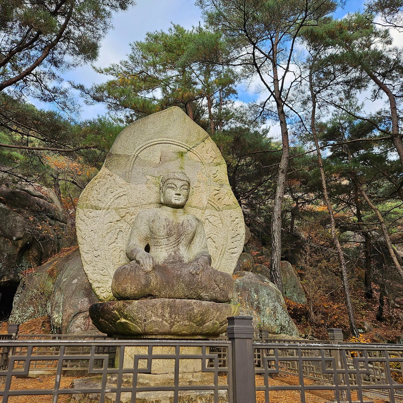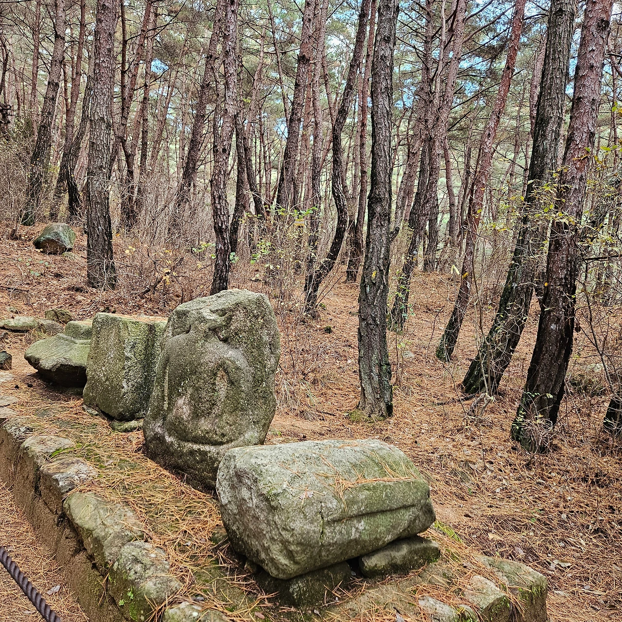그리고 삼릉을 지나 금오봉으로 가는 길을 들어선다. 삼불사로 가는 길이 아닌 금오봉으로 바로 가는 길을 선택하였다. 들어서면 바로 신라 불교의 다양한 문화유산들이 곳곳에 있다. 그곳을 둘러보면서 간다. 다양한 문화유산이 남산 이곳저곳에 산재해 있다. 해발이 250m까지는 사찰의 흔적이 있다. 옛사람들도 산을 오르는 것은 힘들었을 것이다. 불교가 중심이고 그 국가를 상징하고 있는데 그렇게 올라갈 필요가 없어서 그럴 것이다. 조선시대처럼 불교가 핍박을 받는다면 민가 근처에 있지 못하고 심심산속으로 숨어들 수밖에 없는 것이 현실이다.