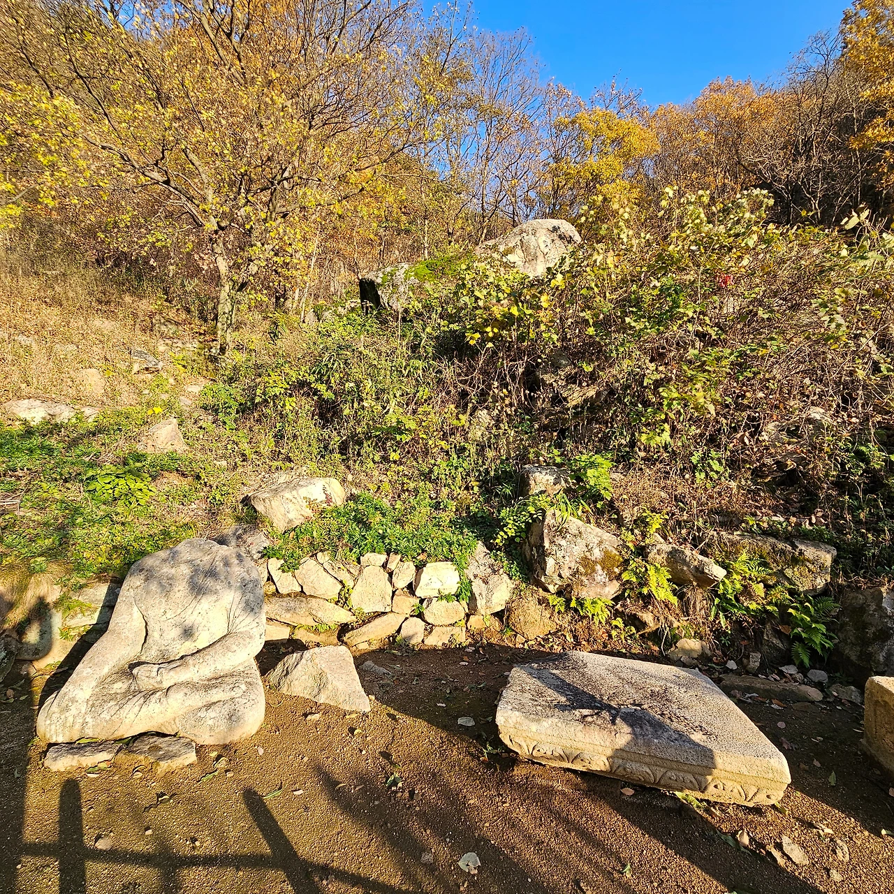 약사골로 내려가면서 문화유산을 다시 둘러본다. 국립공원공단에서는 가파른 길이라고 안내되어 있다. 내려갈 때 가파른 길이 싫다면 이 길을 피하는 길이 좋다고 할 것이다. 하지만, 빠르게 내려갈 수 있는 길이다. 내려가면서 문화유산이 바람과 세월과 비와 눈 및 사람들의 무관심에 의하여 황폐화된 그 문화유산을 그대로 볼 수 있다.