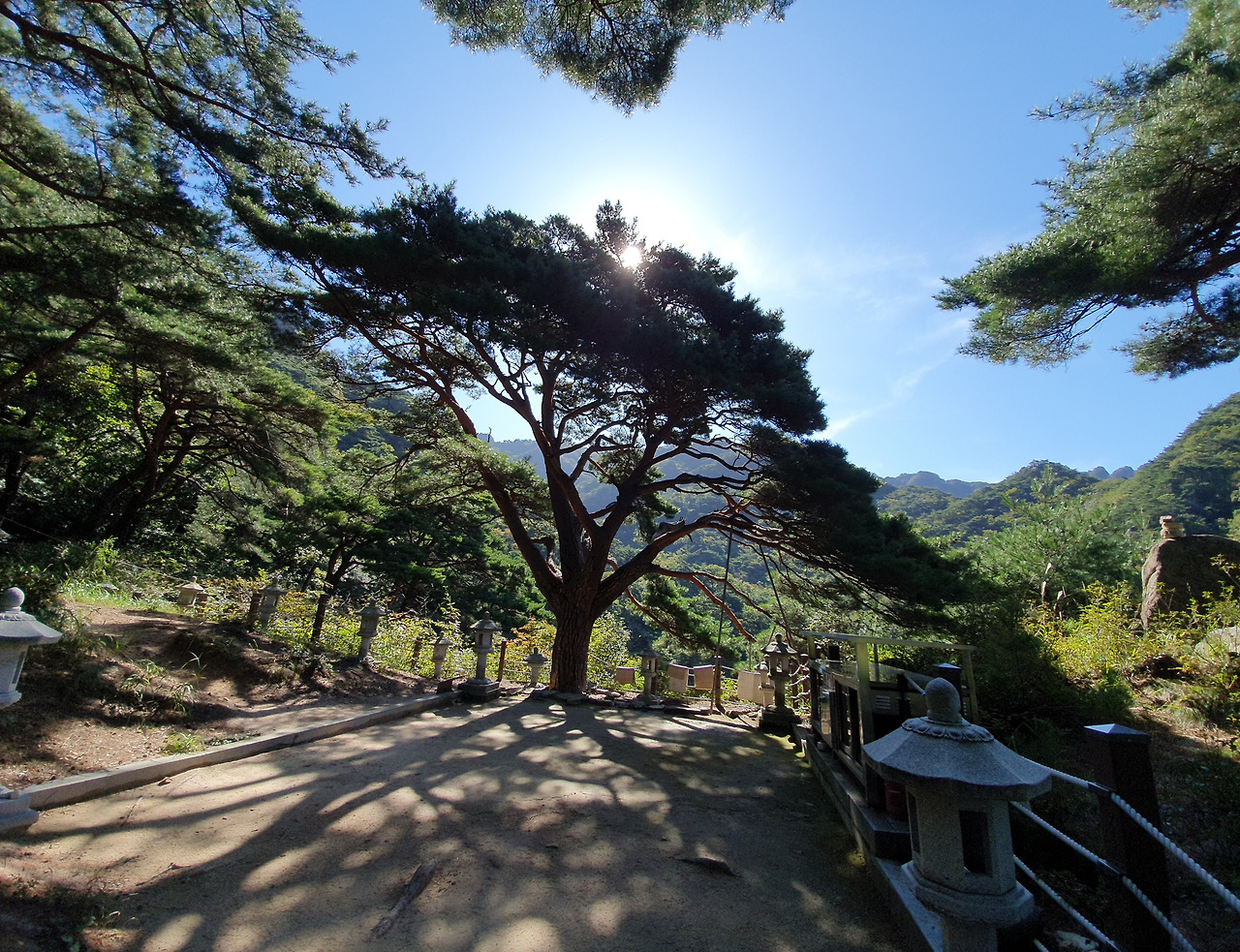 저나무를 카메라에 담으면서 내 카메라의 새로운 성능을 보았다. 천진보탑 옆에 있는 나무가 아름다워 사진으로 담고자 파노라마 옵션을 선택하니 나무 전체가 잡혔다. 울트라 와이드모드가 된 것이다.