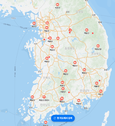 강원도에도 북쪽에도 있고 남쪽에도 있다. 백운산은 흰구름이 있는 산이다. 인터넷으로 조회하면 10개 정도 나온다고 한다. 포천과 가평사이에도 있고 원주에도 있고 정선에도 있다. 그리고 광양에도 있으며, 서울가 가까운 곳에는 수원에 광교산 바로 옆에도 있으며, 양평에는 백운봉이 있다.