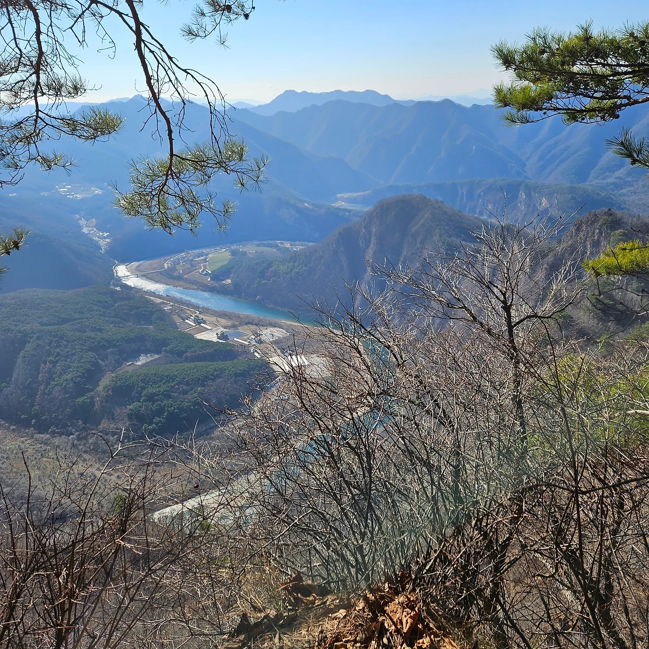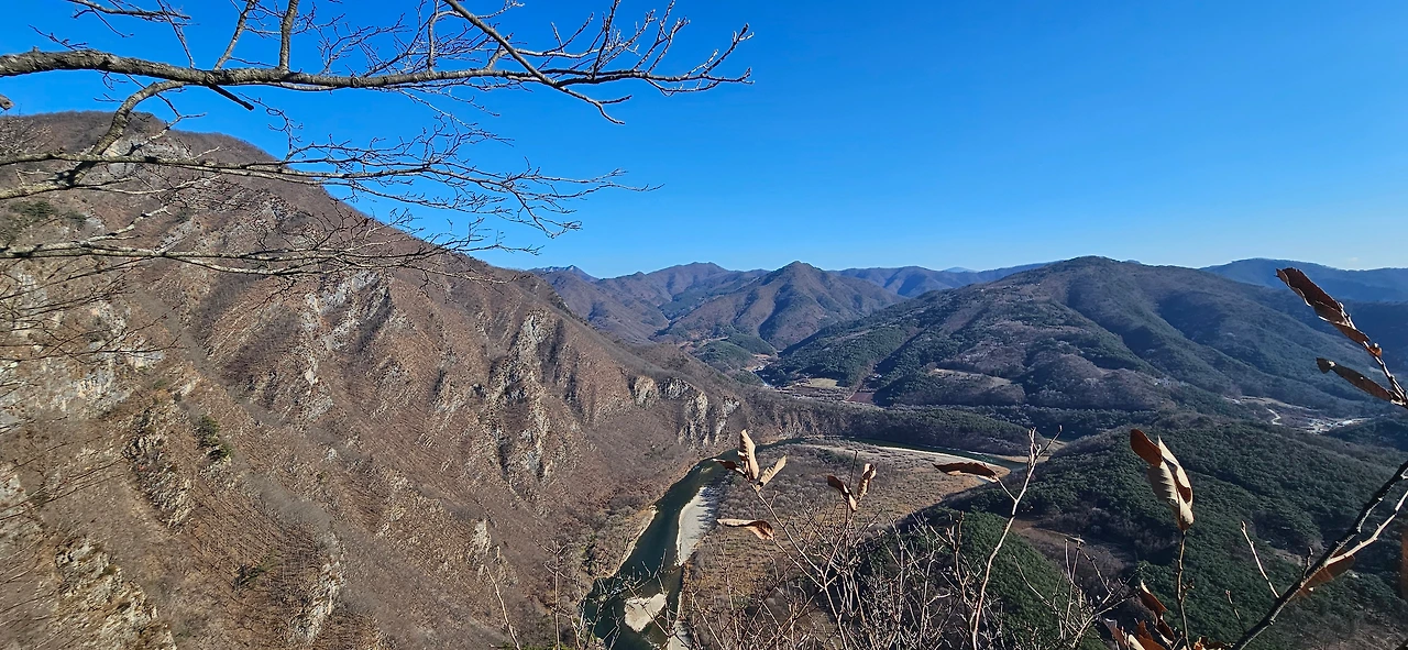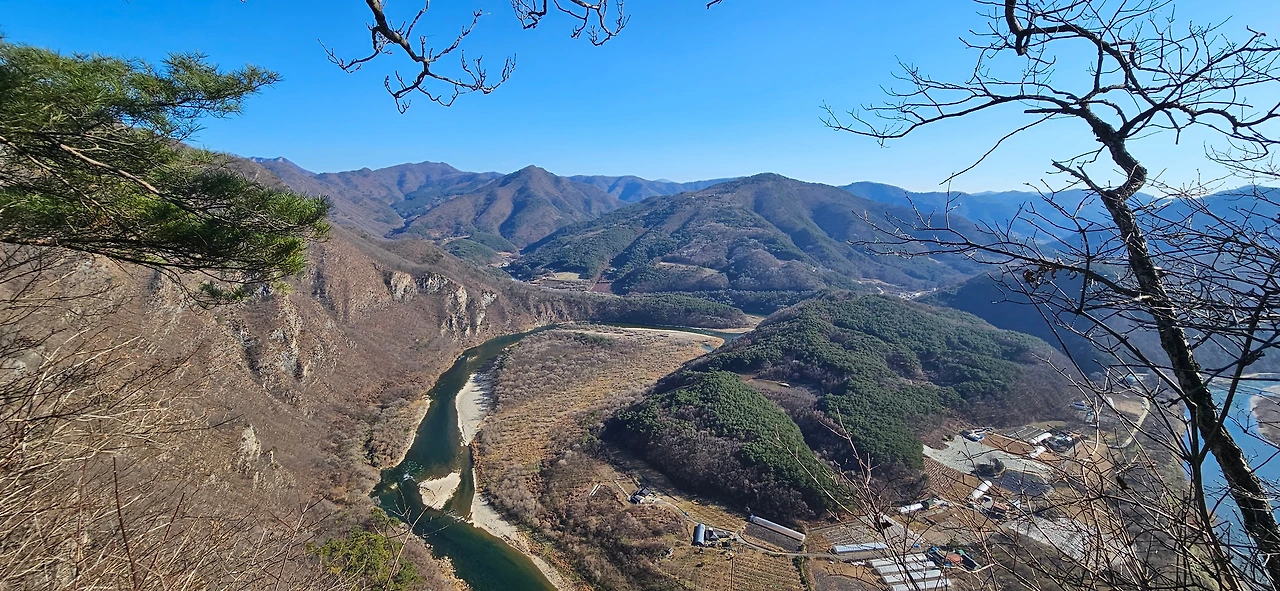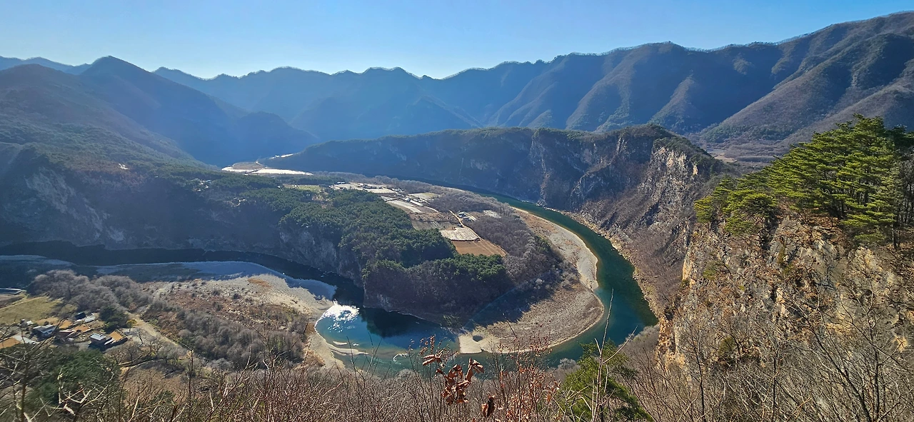 바라다보는 곳이 안동의 회룡포나 영월의 청령포가 생각이 난다. 저 안쪽 마을 사람들은 비가 많이 오면 산을 넘어가지 않으면 고립될 것이다.