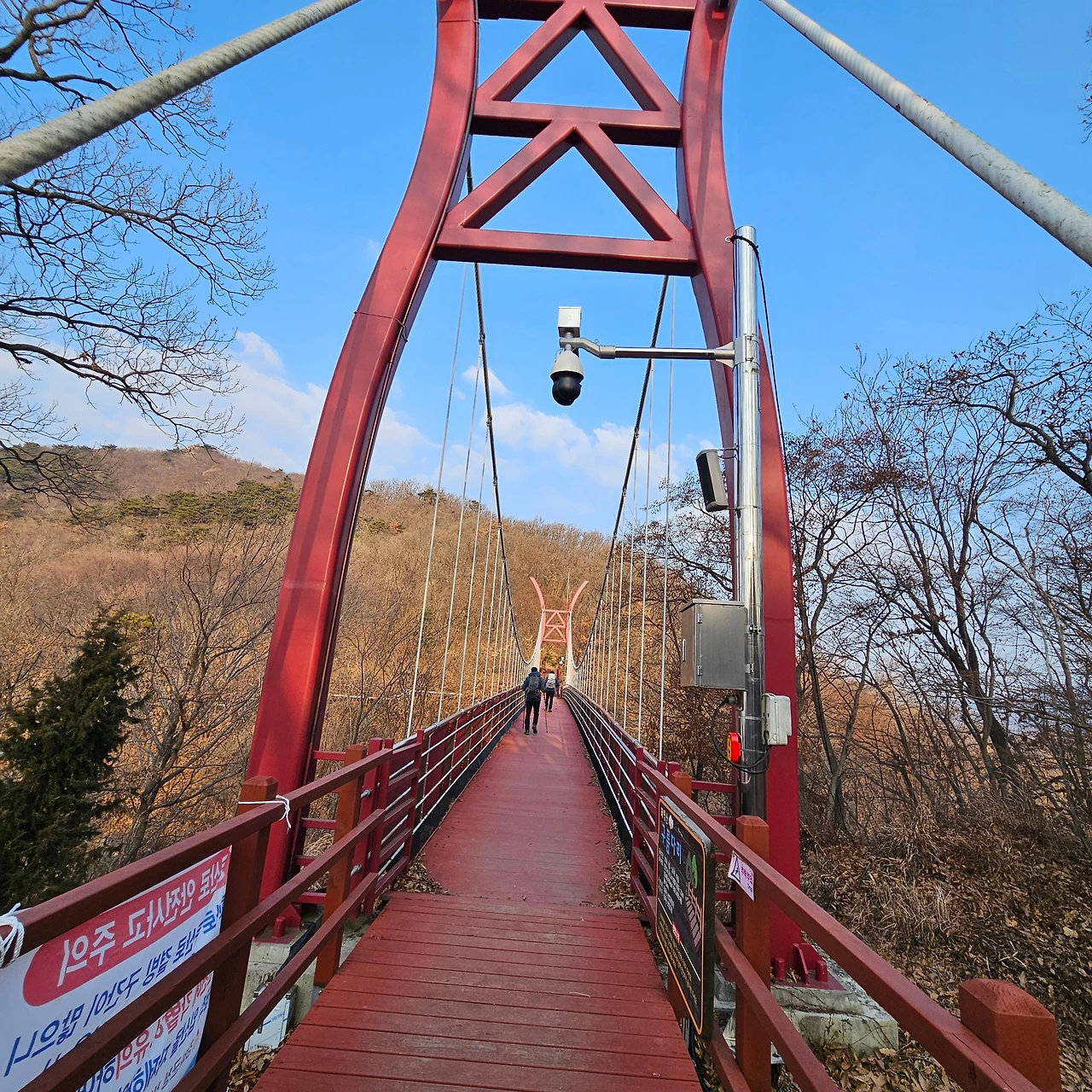한가라지고개에 J의 자동차를 세워두고 내 자동차에 J를 탑승시키고 전득이고개로 이동을 하였다. 전득이 고개에 도착하니 우리보다 먼저 온 산행객들이 있다. 그리고 이어서 강아지 한 마리와 함께 등산객 두 명이 내린다. 강아지를 데리고 등산을 시작한다. 우리는 천천히 준비를 하였다. 구름다리가 있고 전망대가 있는데 전망대는 오늘 미세먼지로 인하여 큰 도움이 되지 않아 구름다리로 바로 이동을 하였다. 전득이 고개에서 시작하여서 그렇지만 섬 산행은 해발이 327m이지만 0m에서 시작한다고 보면 해발이 그렇게 낳은 산이 아니라고 보아야 할 것이다. 산을 오르면서 멀리 섬을 바라다보지만 미세먼지로 그 자취만 보일 뿐이다.