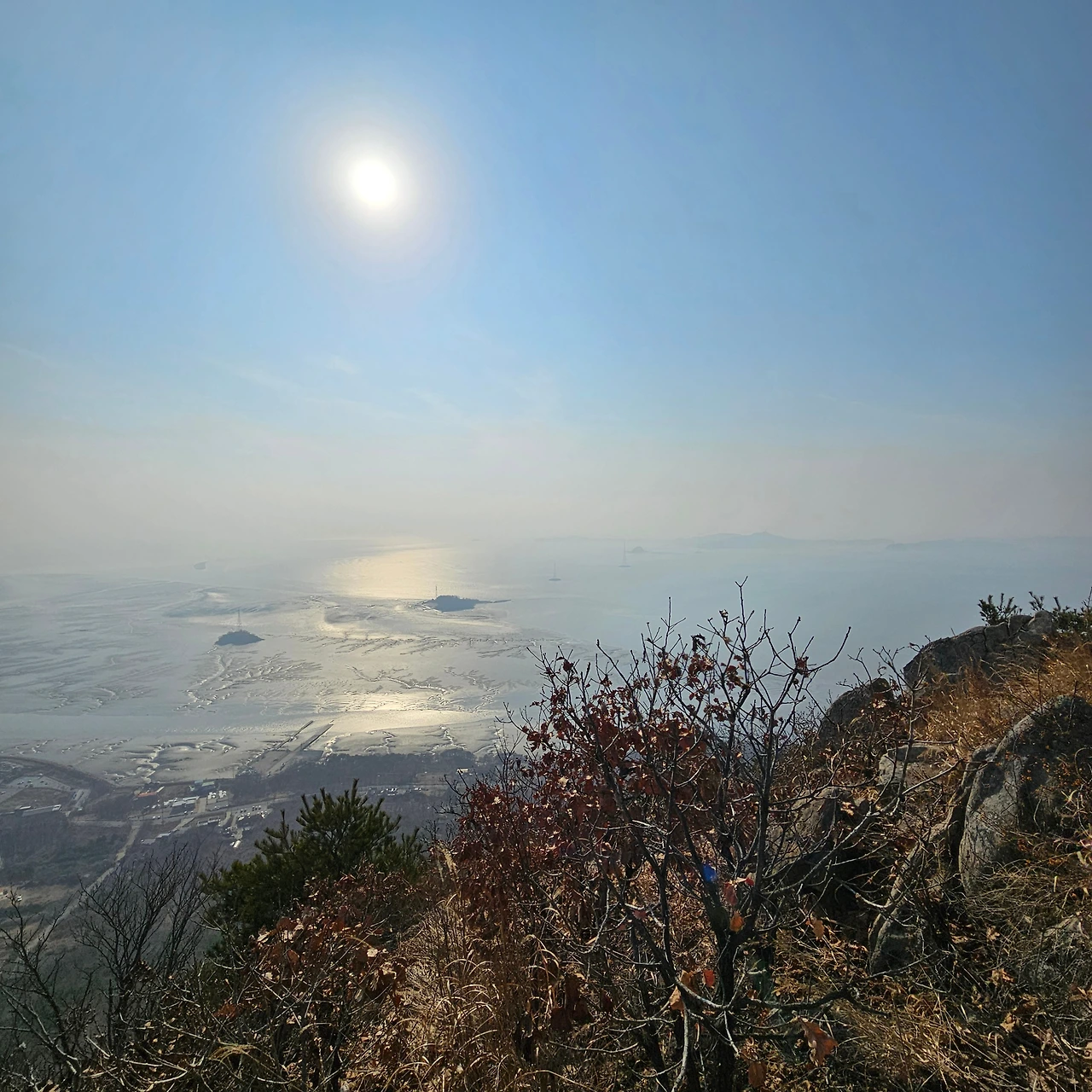 오르면서 강화를 보니 마니산과 진강산이 우뚝 솟아 있다. 마니산만 알고 있지 진강산을 잘 모르지만 마니산이 469m, 진강산이 441m로 그렇게 차이가 나지 않는 산이 강화의 서쪽을 지키고 있다. 산을 오르면서 석모도의 간척의 역사를 이야기한다. 강화전체는 간척의 역사이고 석모도도 동일하다. 그 넓은 평야를 만들기 위하여 우리 조상들은 무척이나 고난의 세월을 겪었을 것이다.