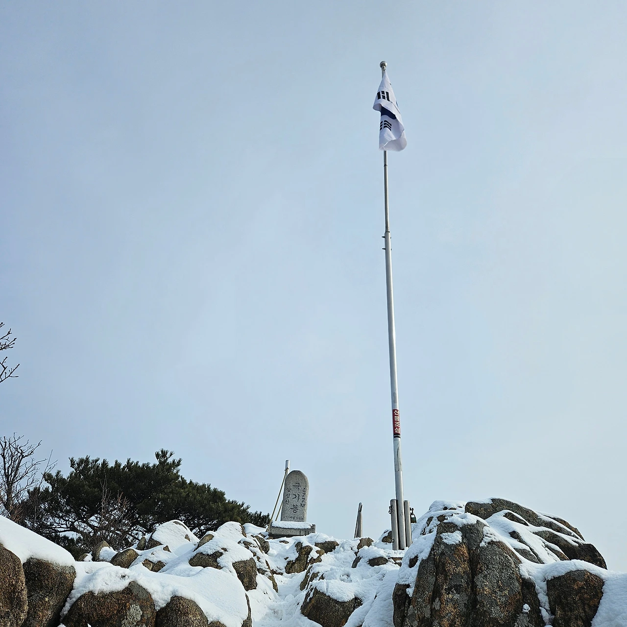 국기봉으로 향하는 길 젊음을 뽐내며 지나가는 사람들에게 길을 양보하고 한 걸음씩 올라서니 태극기만이 바람과 친구 되어 나를 반길 뿐이다. 누구도 그곳에 머물러 있지 못하고 눈과 바람과 태극기가 친구가 되어서 그곳을 지킬 뿐이다. 그곳의 주인들이 주인이 되어 자리를 지키고 있다.
