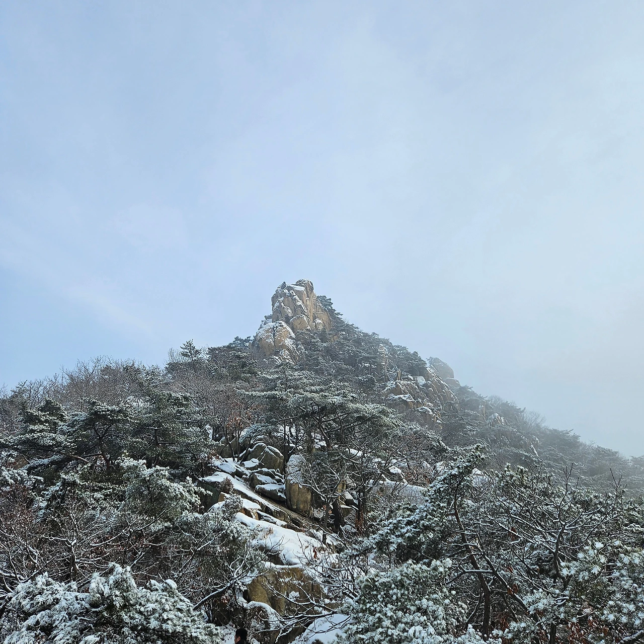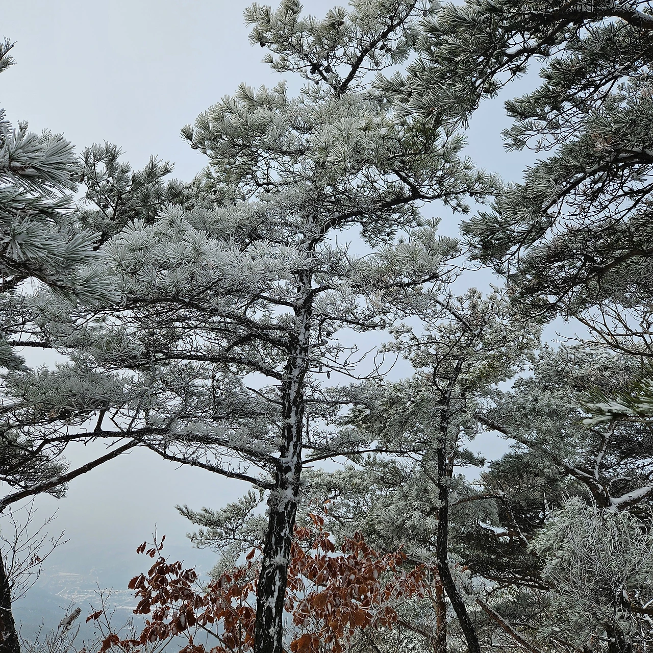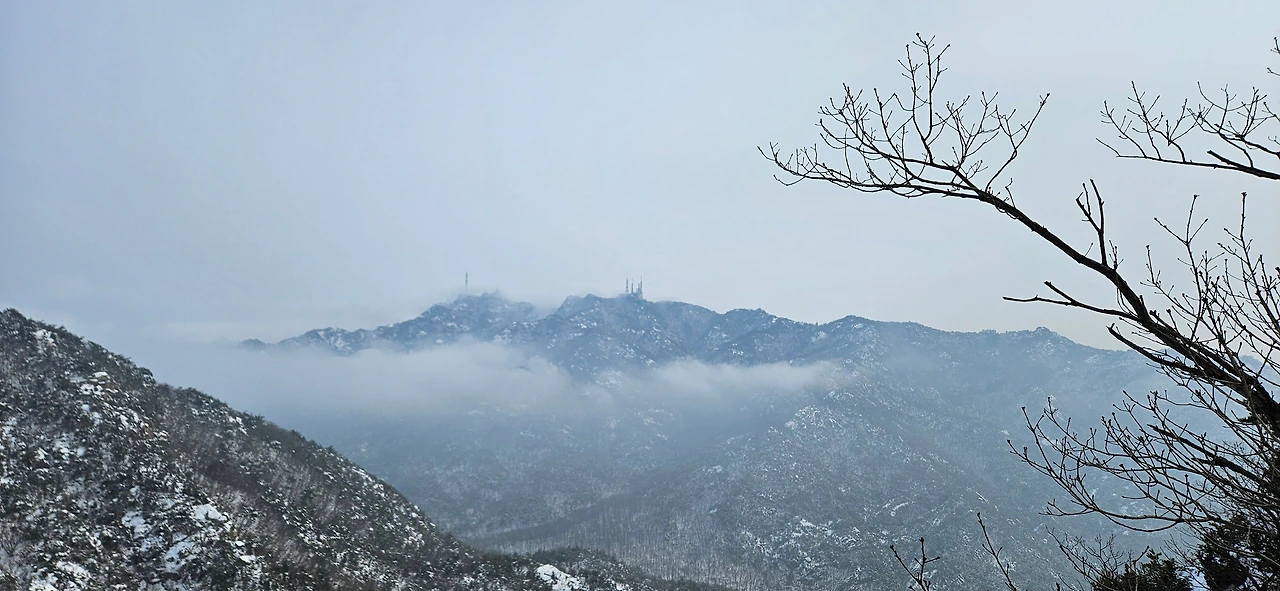 멀리 관악산이 신비로운 모습을 하고 있다. 삼성산을 그렇게 다녔으면서 오늘처럼 활성안개가 조금씩 나타났다가 사라지면서 관악산을 영산처럼 만들고 있다. 지나가는 등산객이 나를 붙잡고 그 모습을 같이 담기를 원하여 호응을 한다. 관악산의 저곳에 어떤 신비로움이 있을 것인지는 삼악사에서 장군봉으로 내려가면 알았다. 그곳에 지금은 상고대가 형성이 되고 있다는 것을 알았다.