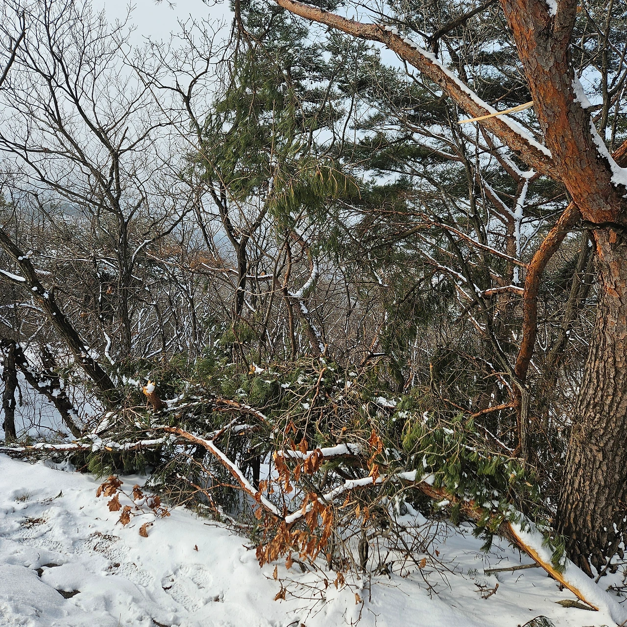 작년 11월 첫눈이 많은 소나무들을 아프게 하였다.