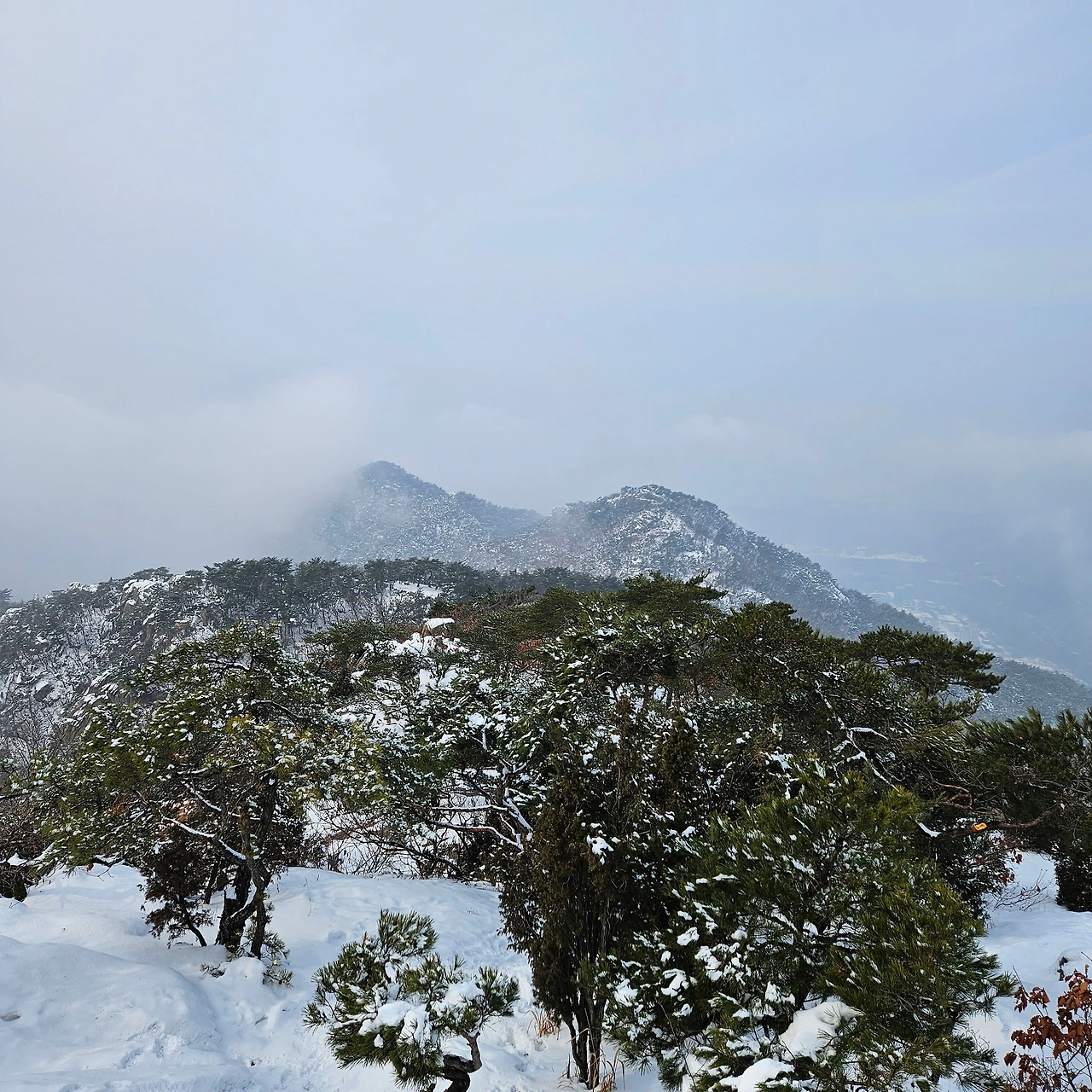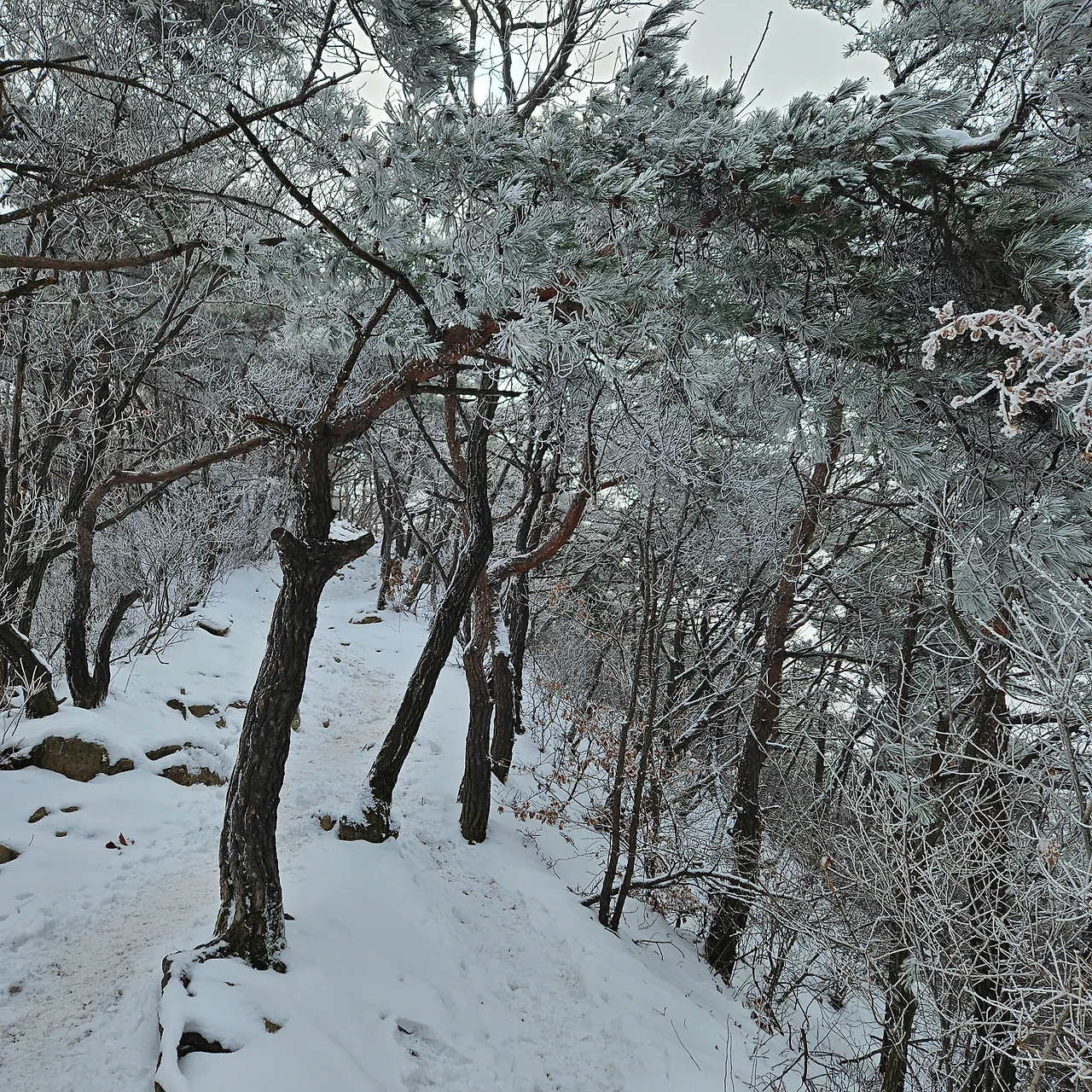 전날 내린 눈으로 인하여 친구들과의 산행 약속이 흐트러졌다.