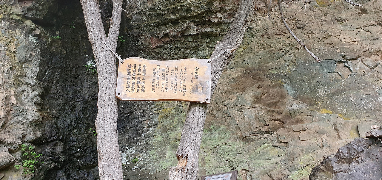 김생굴이다. 신라 명필 김생(金生, 711~791)이 10년간 글씨 공부를 한 곳으로 전해지는 곳으로 김샘폭포가 어제 내린비로 물줄기를 뿌리고 있다.