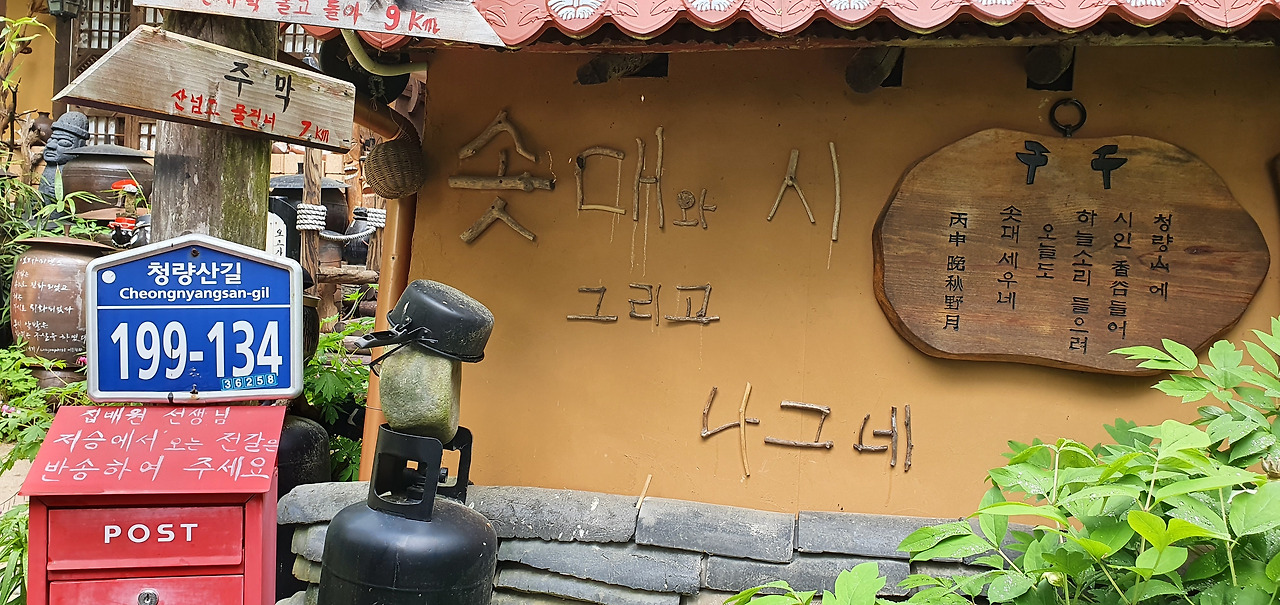 청량사와 김생굴로 가는 갈림길이다. 청량사를 들렀다가 돌아와야 한다. 계단이 가파르다. 청량정사가 청량사로 가는길에 있다. 퇴계이황의 남긴뜻을 받들어 퇴계선생을 기리며 학문과 수양의 장소로 사용되었다고 한다.아담한 찻집과 우편함이 재미있다. "집배원선생님 모든우편물은 환영하나 저승에서 오는 전갈은 반송합니다"