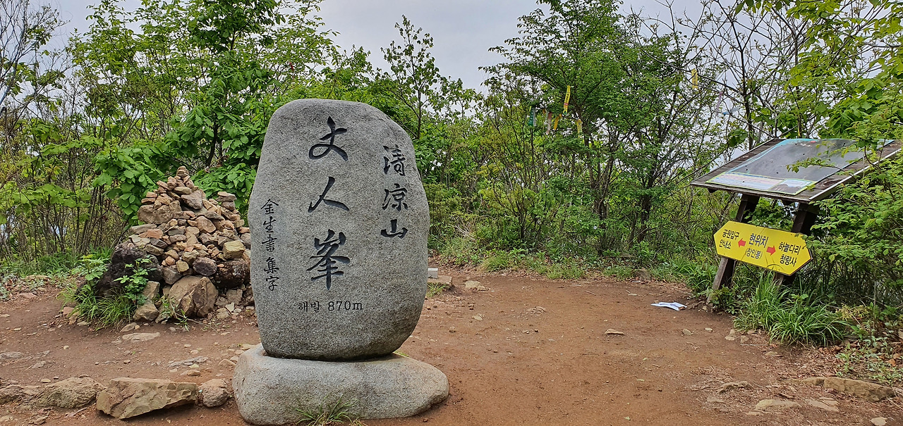 청량사를 이곳저곳 둘러보고 다시 등산로에 들어선다. 청량사에서 자소봉을 가지않고 하늘다리로 직접 갈수 있다고 하나 자소봉과 김생굴을 지나칠수 없어 등산로로로 들어서서 힘들게 오로니 본인들은 청량사로 가는데 힘드냐고 물으니 내리막이라 힘들지 않다고 답변을 한다. 경일봉과 김생굴 갈림길이다. 경일봉으로 가면 청량산 전체를 종주할 수 있지만 제한된 시간에 등산하여야 하는 만큼 단축 코스를 선택한다.