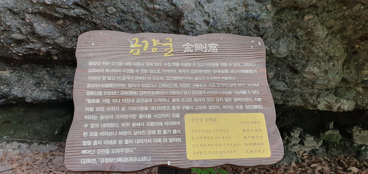 금강대를 거쳐서 안내소로 이동한 후 버스가 주차되어 있는 곳으로 가면된다. 이제는 오르는 것보다 내려가는 것이 문제다. 해발 870m에서 200m까지 내려가야 하므로 가파르게 내려갈 것이다.