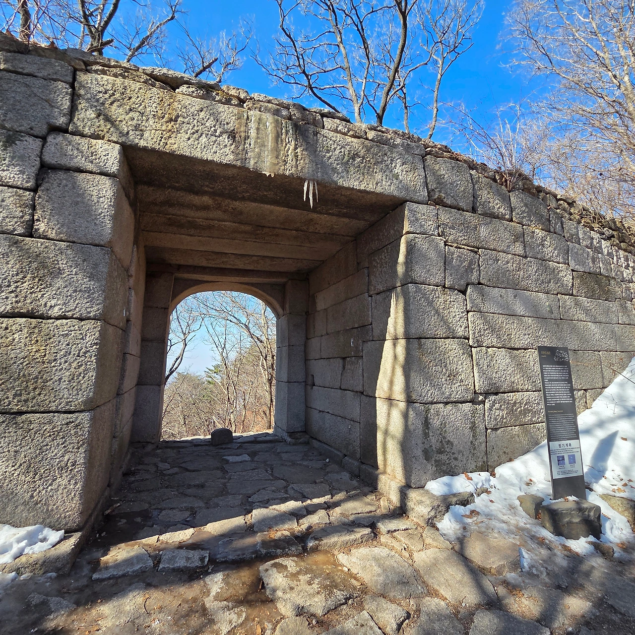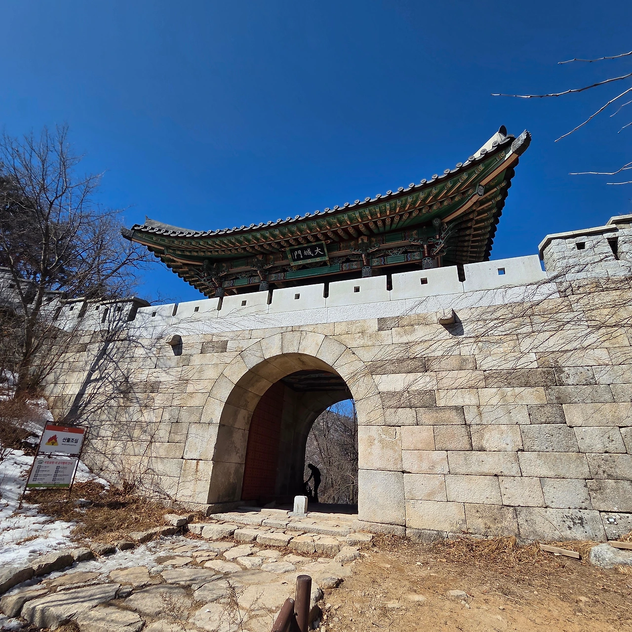 대동문에 도착하였다. 4시간 남짓에 이곳까지 왔고 아직 해가 지기까지는 시간이 많이 남아 있다. 처음 계산은 이곳에 와서 체력을 확인하고 하산할 것인지 고민을 한다고 하였는데 체력도 남아 있고 하여 더 걷는다. 용암문을 거쳐서 위문까지 간 후 하산을 한 다음 원효봉을 오르면 북문, 시구문을 거쳐서 대서문으로 갈 것이다. 용암문을 지나면서 이제는 길이 노적봉을 지나고 지난번 암석이 굴러서 등산로가 막힌 후 열린 백운대에서 북한산성 입구 탐방지원센터로 내려가는 계곡길을 내려갈 것이다.