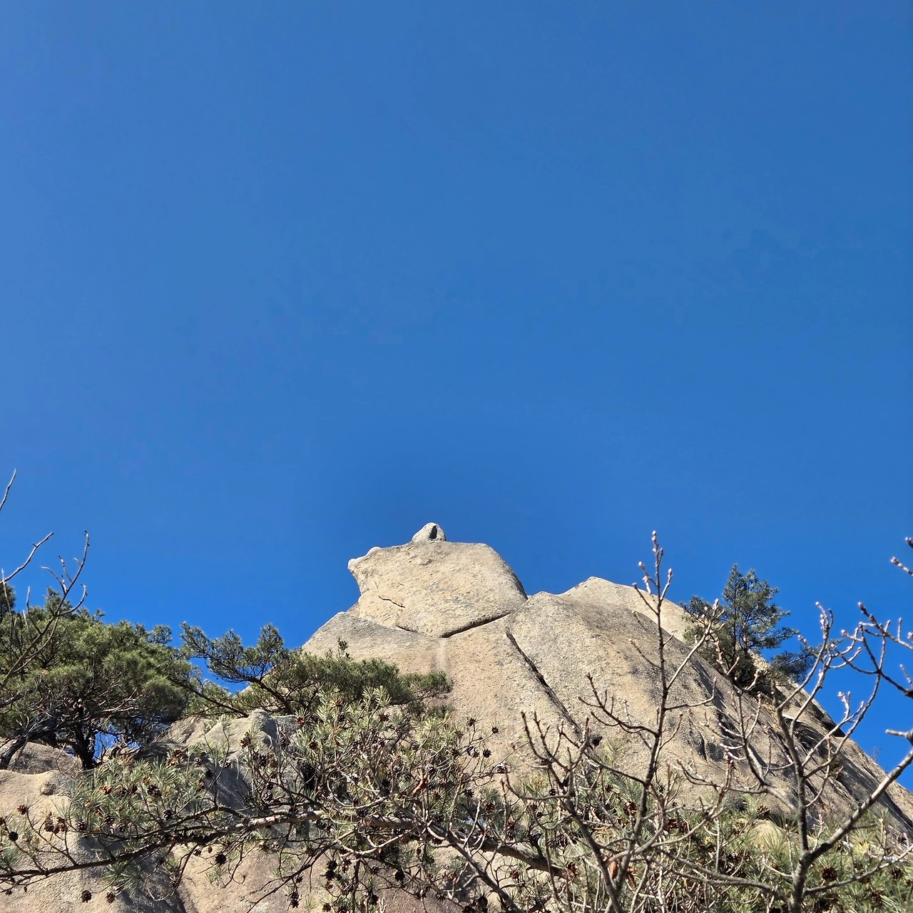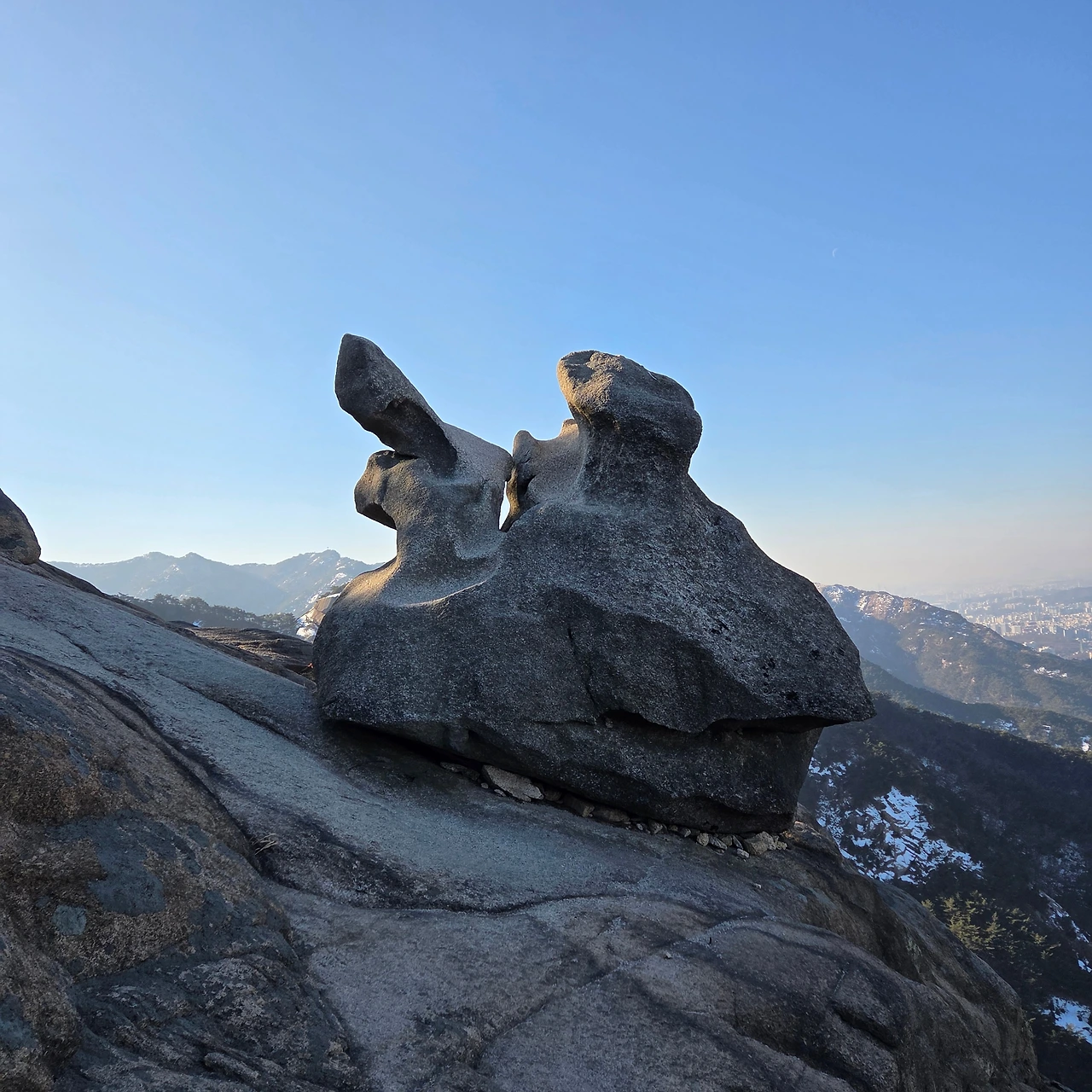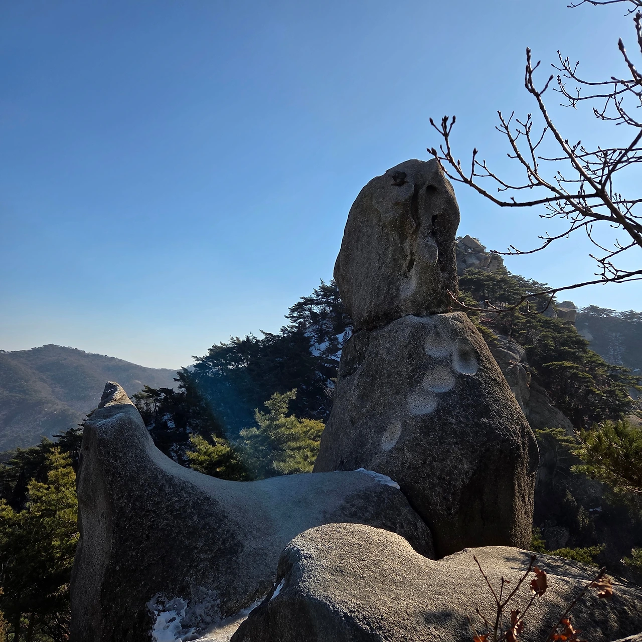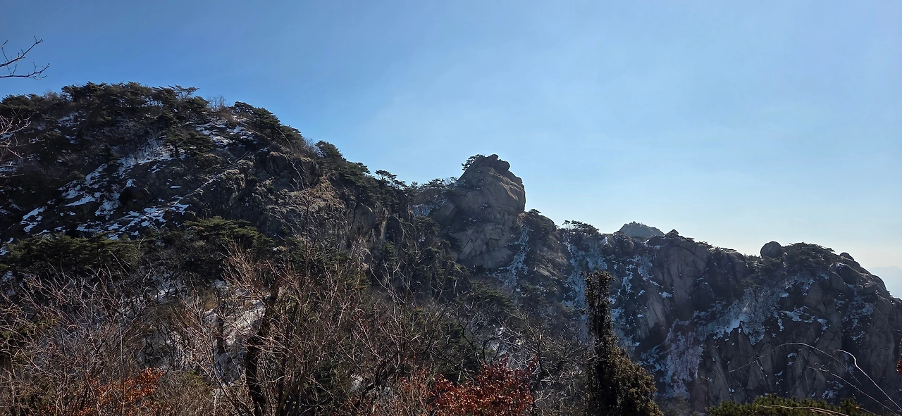 가사동암문을 지나서 오른 봉이 바로 다음 봉이 용출봉이다. 봉우리를 하나 오를 때마다 고도는 높아지고 얼음도 있고 눈도 있다. 고민을 하면서 지나간다. 아이젠을 하여야 하는지 고민은 계속된다. 용출봉을 오를 때는 데크를 오르면서 지나온 의상봉과 우리가 마지막으로 오를 원효봉을 동시에 담아 본다. 그리고, 얼음을 피해 조심스럽게 오른 후 멋진 풍경 앞에 앉아서 잠시 고민을 한 후 내려온 후 용혈봉을 오른다. 할미바위를 지나고 오른다. 용혈봉은 데크로 오르면 바로 정상이기에 문제가 없었다. 이제는 증취봉이다. 이곳까지는 그래도 아이젠 없이 올라왔지만, 해발이 이제는 600m다. 다음봉을 오를 때는 반드시 아이젠이 필요하다. 내려가면서 여름산을 다닐 때 보지 못하였던 멋진 바위를 보았다. 그리고 지난다. 오르기 전 아이젠을 착용하고 오른다. 나월봉이다. 나월봉을 오르면서 내가 오래전에 왔다 갔다는 사실을 확인하였다. 없었던 데크가 있다. 그리고 그 데크를 천천히 오르면서 예전에는 힘들게 올랐는데 하는 생각을 한다. 젊은 사람들이 힘차게 오른다. 하지만, 길을 잘못 들어 돌아온다. 이것이 인생이다.