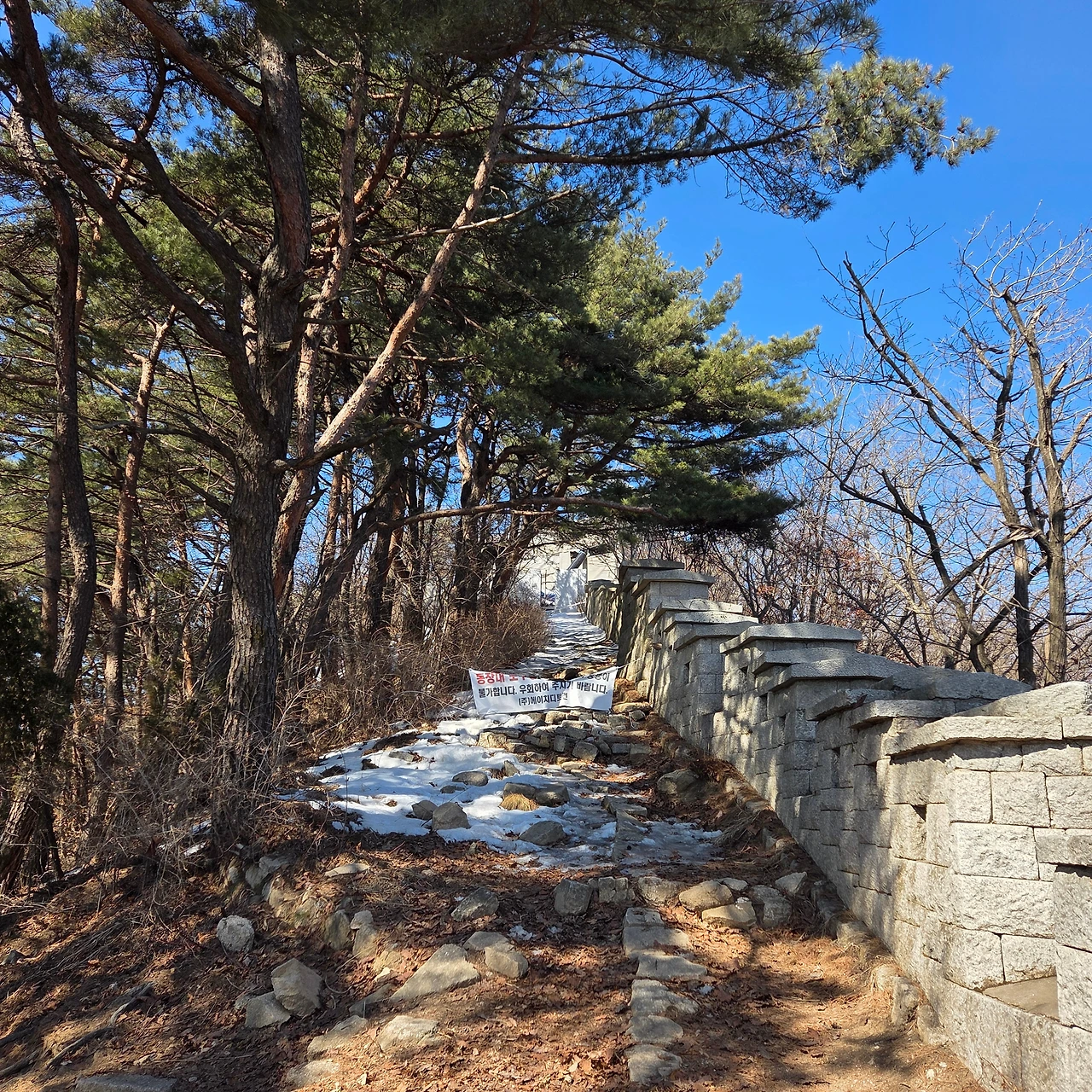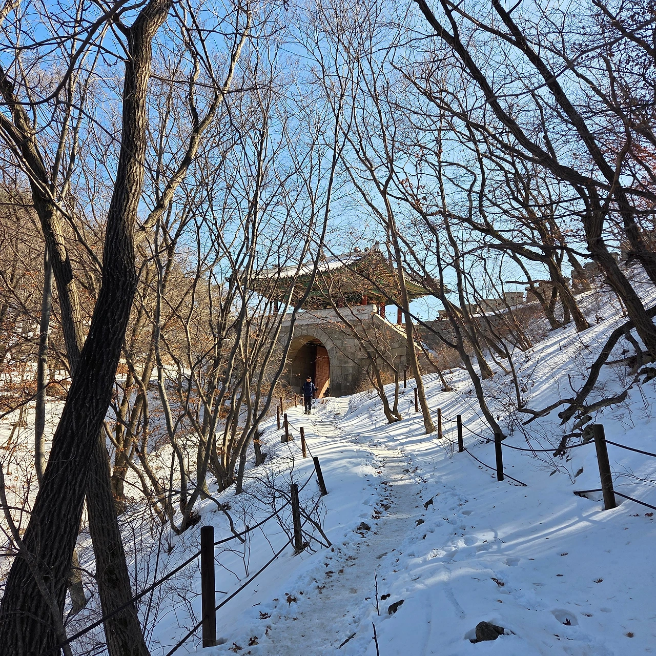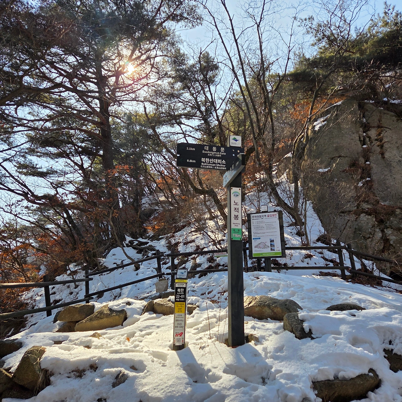 이곳에서 보국문으로 이동하는데 오르는 것은 쉬운데 내려가는 것이 힘들다. 오를 때는 쉬운데 내려가는 것이 힘들다면 그만큼 해발고도가 낮아진다는 것이다. 어떤 사람이 아이젠 없이 내려가고 있다. 그분이 안전펜스를 잡고 내려가면서 길을 열어주지 않아 정체현상이 발생하고 있다. 그래도 겨울산을 오면서 아이젠을 갖고 다녀야 하는데 아쉽다. 하지만, 그분은 무용담을 늘어놓을 것이다. 안전한 산행이 되었기를 바랄 뿐이다.
