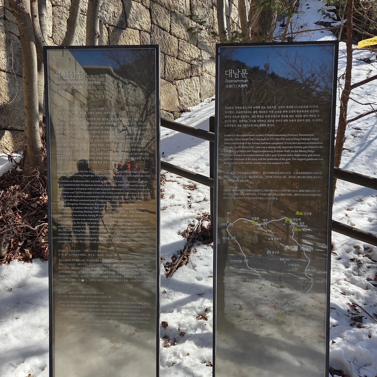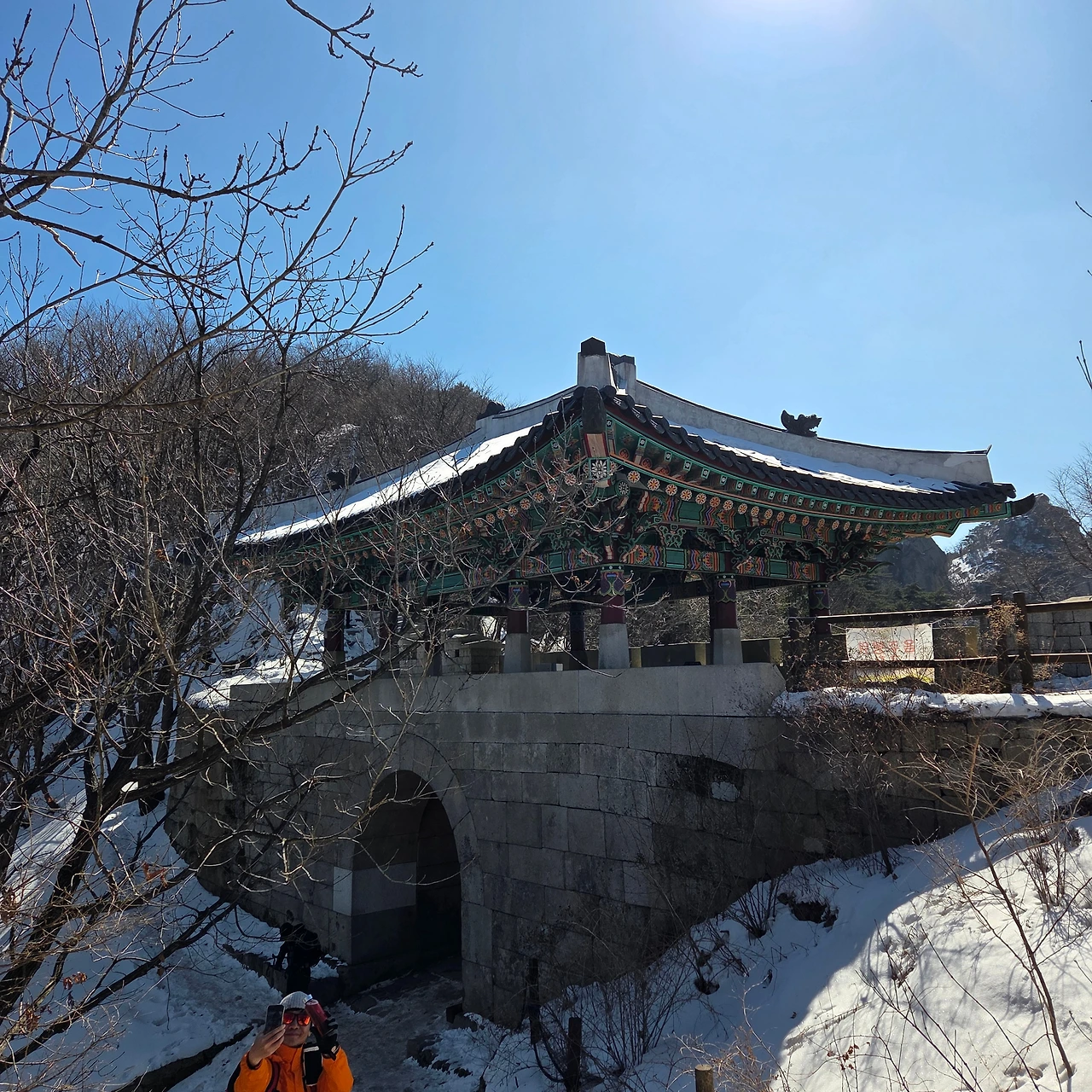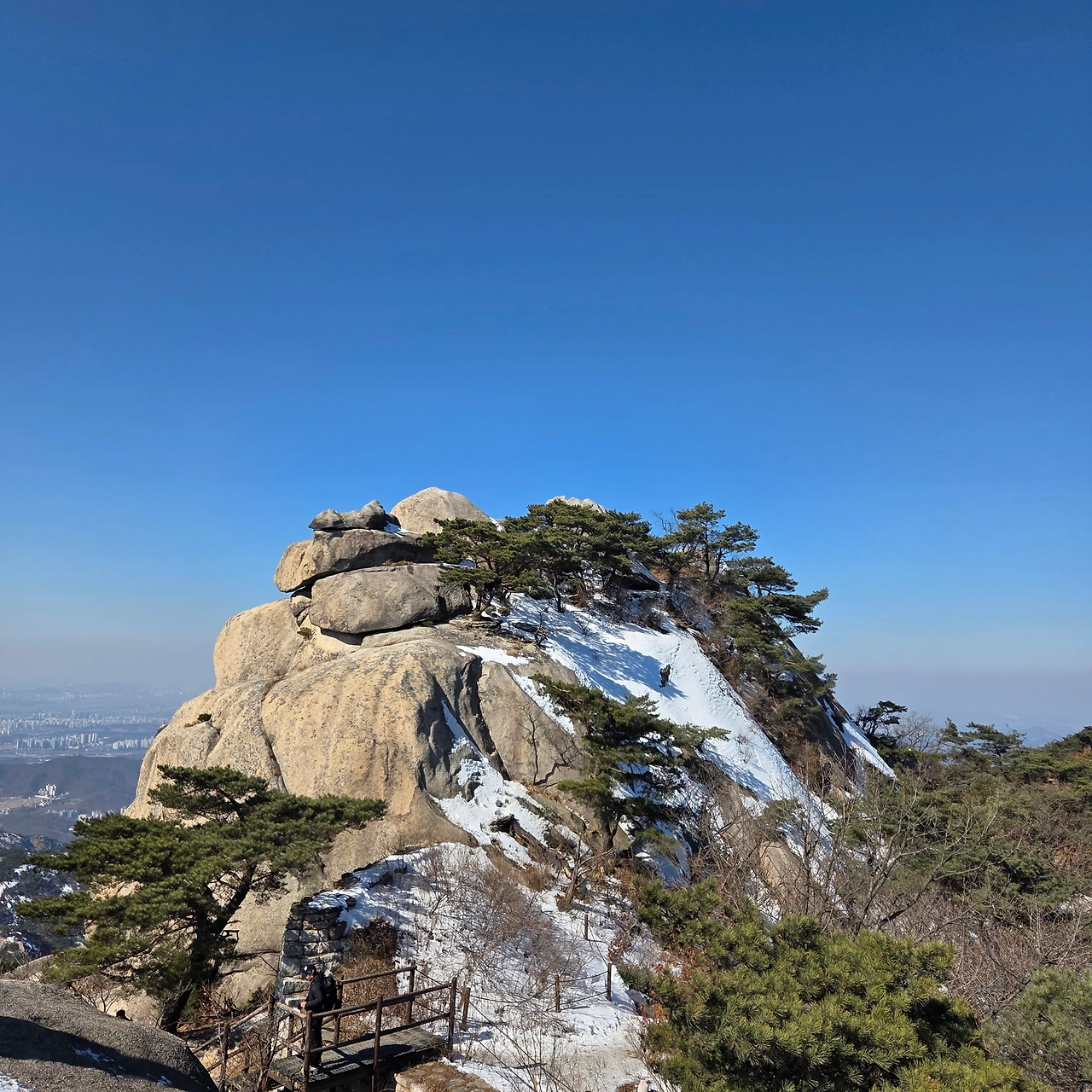 이곳에서 보국문으로 이동하는데 오르는 것은 쉬운데 내려가는 것이 힘들다. 오를 때는 쉬운데 내려가는 것이 힘들다면 그만큼 해발고도가 낮아진다는 것이다. 어떤 사람이 아이젠 없이 내려가고 있다. 그분이 안전펜스를 잡고 내려가면서 길을 열어주지 않아 정체현상이 발생하고 있다. 그래도 겨울산을 오면서 아이젠을 갖고 다녀야 하는데 아쉽다. 하지만, 그분은 무용담을 늘어놓을 것이다. 안전한 산행이 되었기를 바랄 뿐이다.