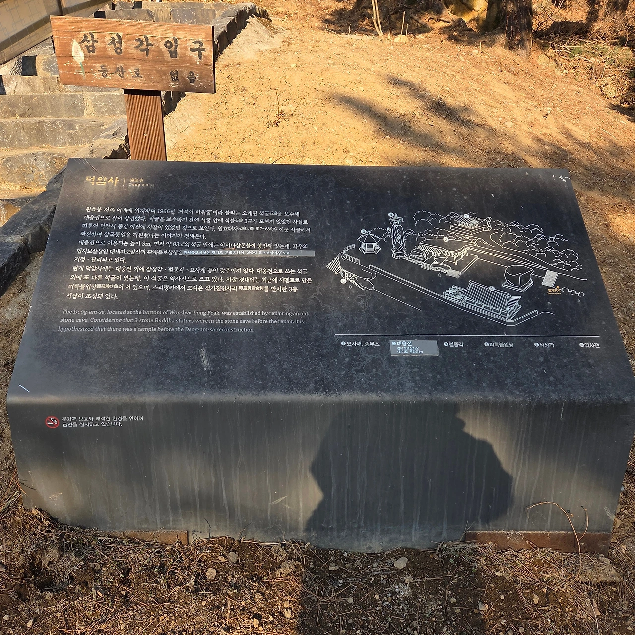 이제는 가파른 하산길이다. 그 길을 내려가면서 오늘은 이상하게 스틱 없이 걸었다는 것을 실감한다. 내려가면서 힘들다고 느끼는 것은 스틱 없이 내려가기 때문이다. 시구문까지 내려가면서 오늘은 어려운 길을 걸었다는 것을 확인하였다. 시구문에서 오른쪽으로 가면 마을로 가고 왼쪽으로 가면 덕암사가 있다. 편안하게 하산할 수 있는 길이다. 아미타사라는 이정표가 있는 사찰이다. 덕암사로 들어선 후 편안한 하산길을 따라서 가면 대서문에 다다른다. 이렇게 오늘은 12문을 종주하였다. 중간에 있는 중성문은 돌아보지 않았다. 12문을 지난 것이다. 13번째 중성문은 좀 더 위로 올라가야 해서 다음을 기약하였다. 하지만, 북한산을 한 바퀴 돌았다.