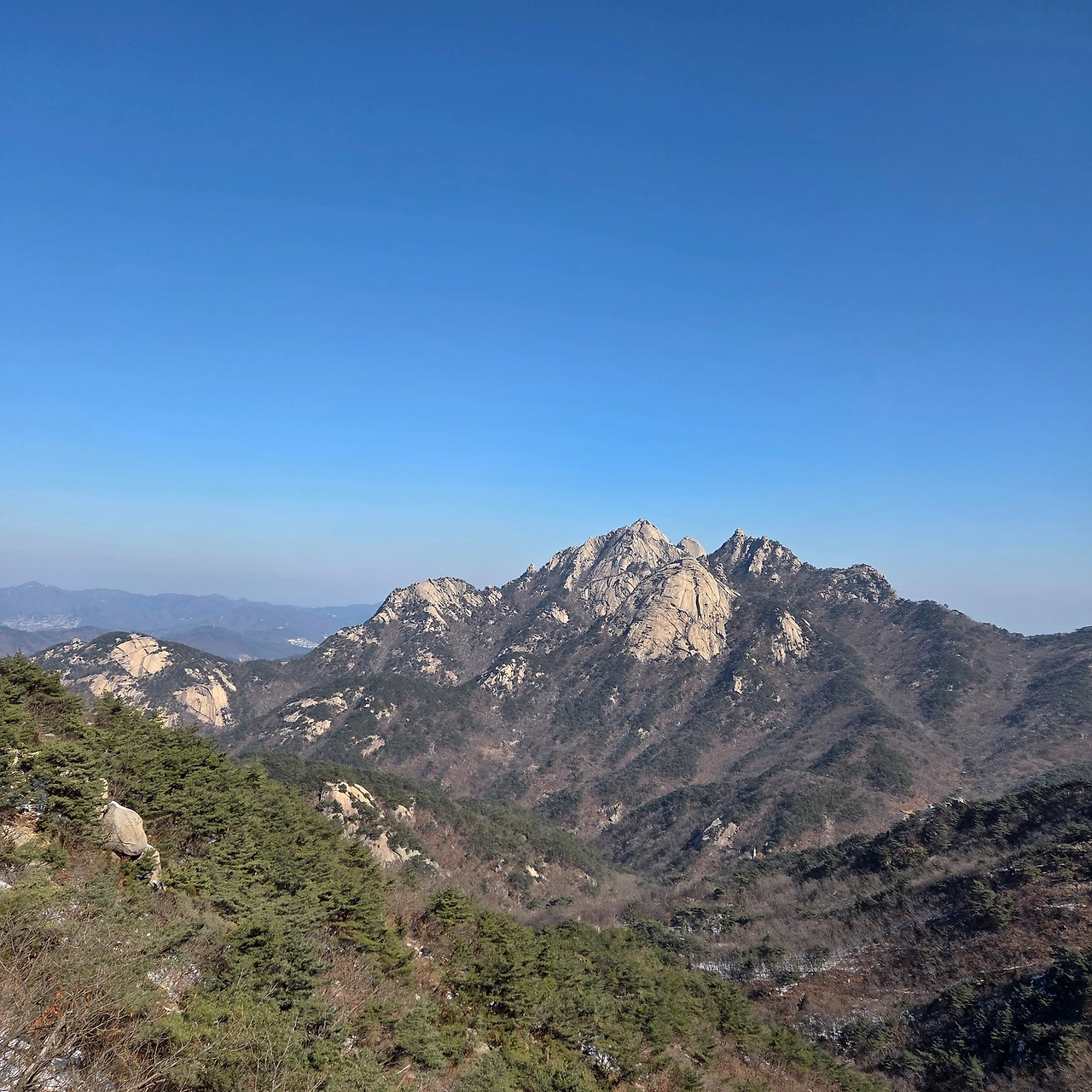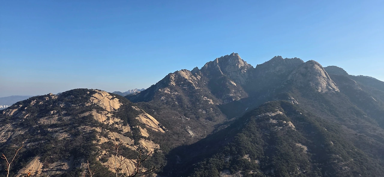 멀리 있는 비봉능선과 주변을 돌아보고 원효봉에서부터 백운대, 노적봉 등의 모습을 본다. 하루종일 북한산 전체를 둘러보는 이 산행이 너무 좋다. 산이 있기에 한국은 그것을 극복하려고 오르고 내리면서 그 기운을 받아 역경을 이겨내는 한국인이 된 것이다. 의상봉을 지나면서 오늘 오를 봉을 계산하지만, 정확하게 몇 개를 지날 수 있지 가름하지 못하고 앞으로 갈 봉우리를 사진으로 담아 본다.