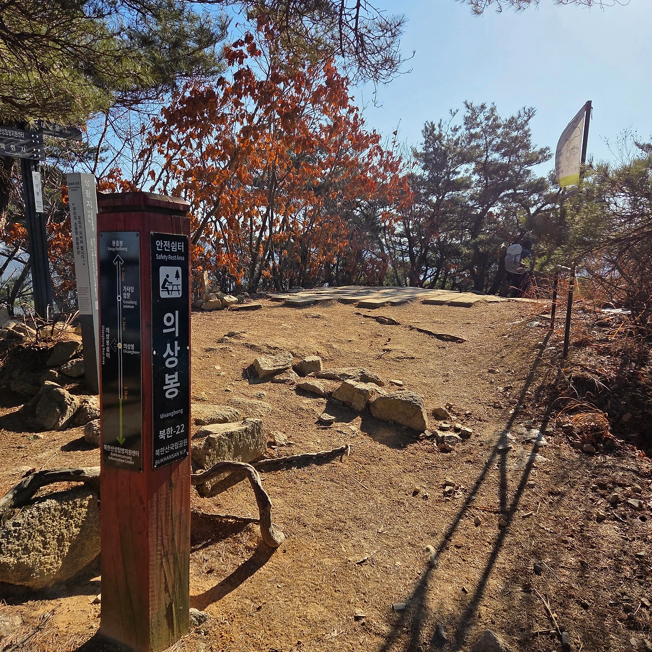 구파발역에서 H와 만난 후 구파발역에서 북한산성입구까지 주말이나 공휴일 등에 임시 편성된 시내버스가 있어 편리하다. 이를 이용하여 북한산성 입구로 이동을 한다. H가 내가 5년 동안 의상능선을 걸어본 기억이 없고 의상능선부터 걷는 것이 좋겠다고 얘기하여 그대로 따랐다. H가 수시로 북한산과 도봉산을 등산을 하니 나보다 전문가이다. 전문가의 의견을 따라 백화사 입구에서 하차하여 천천히 둘레길을 이용하여 의상능선 입구에 도착하여 의상봉을 오른다.