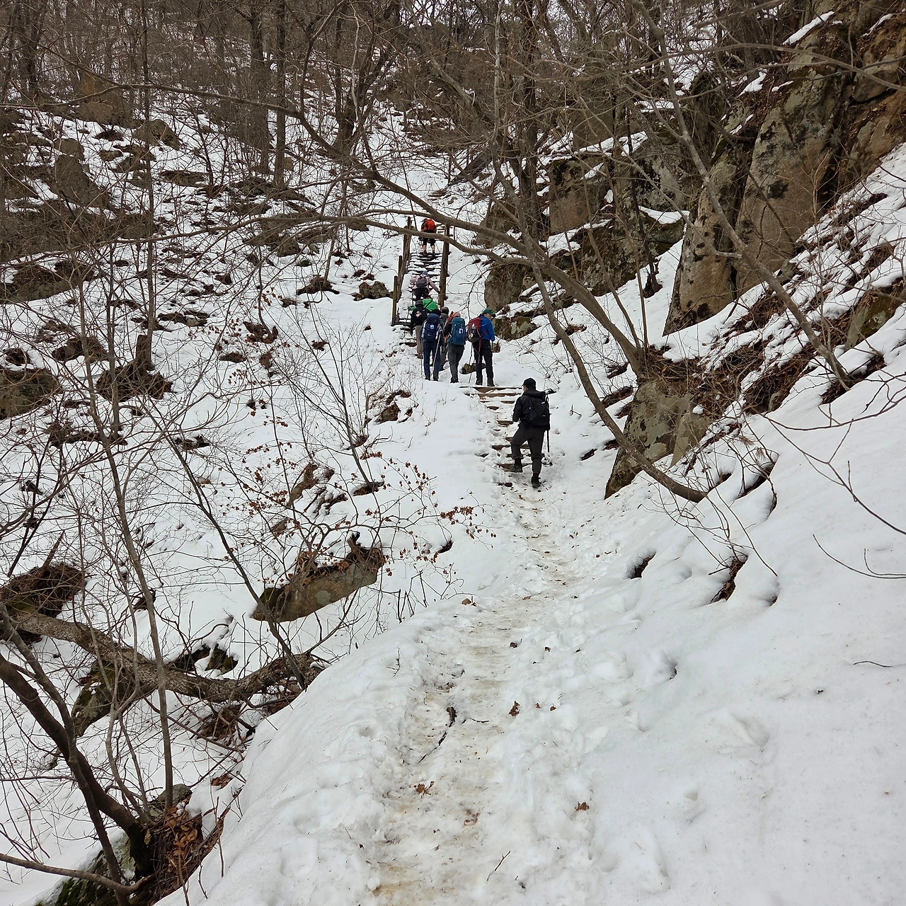 잔설이 남아 있는 산을 조심스렀게 다녀야 한다.