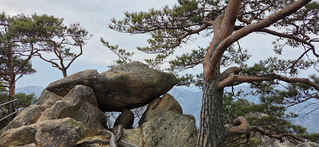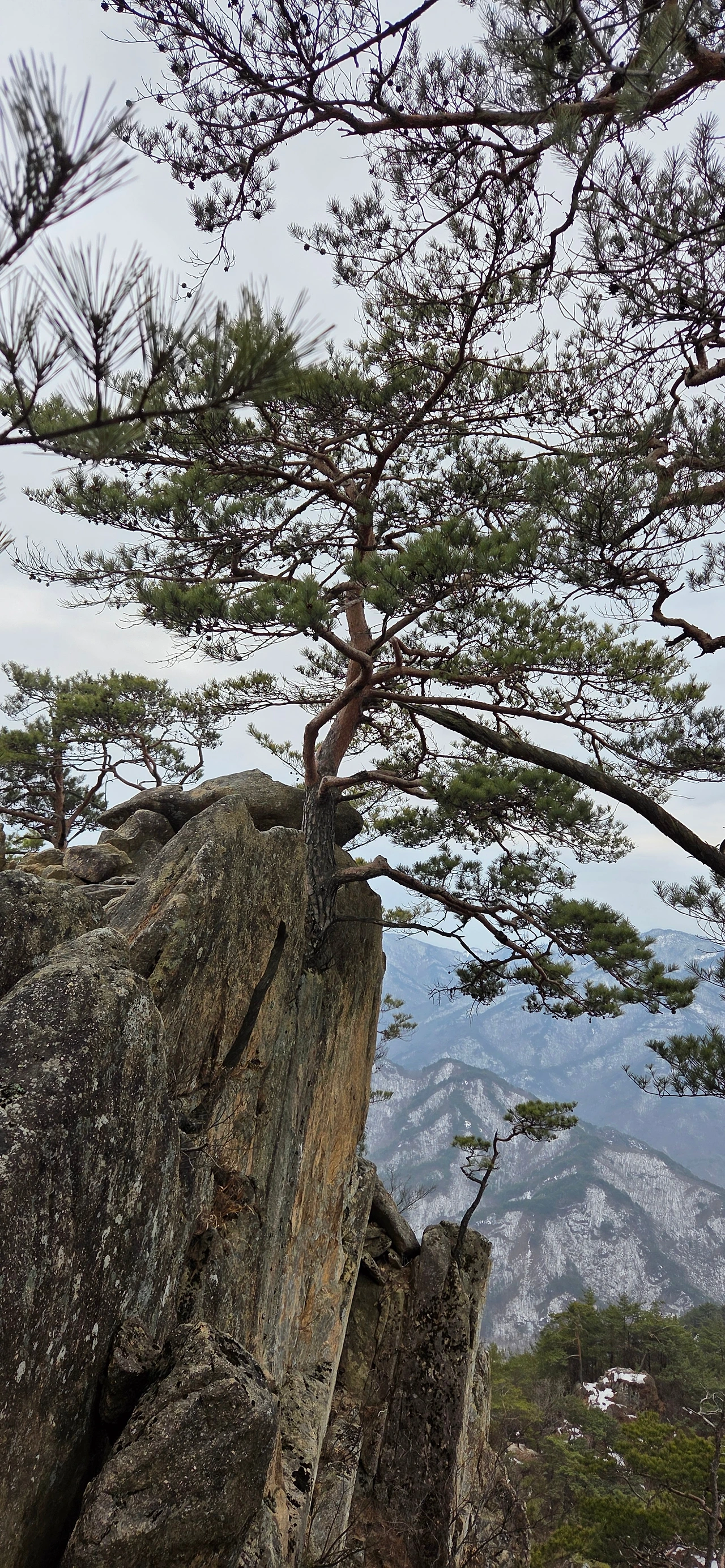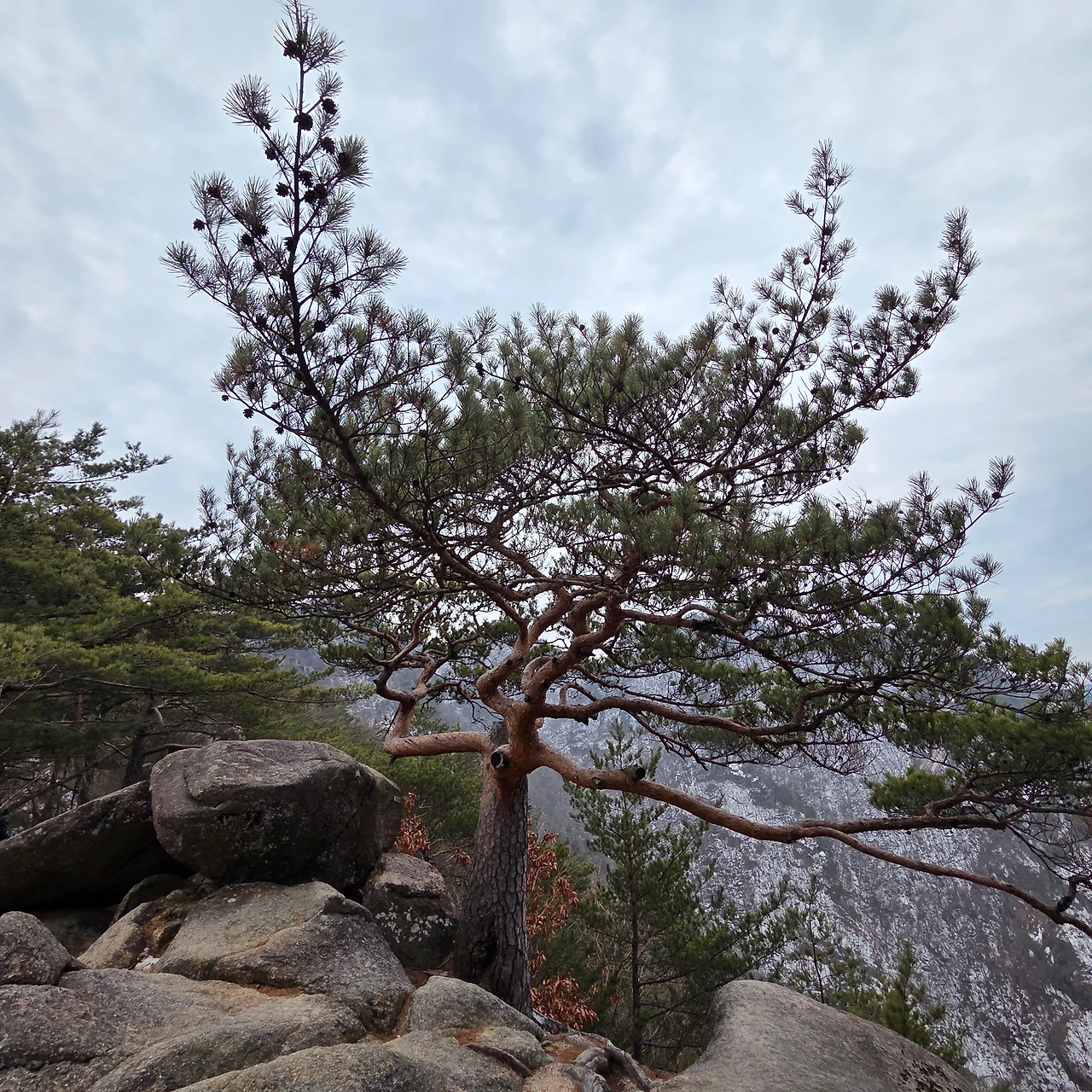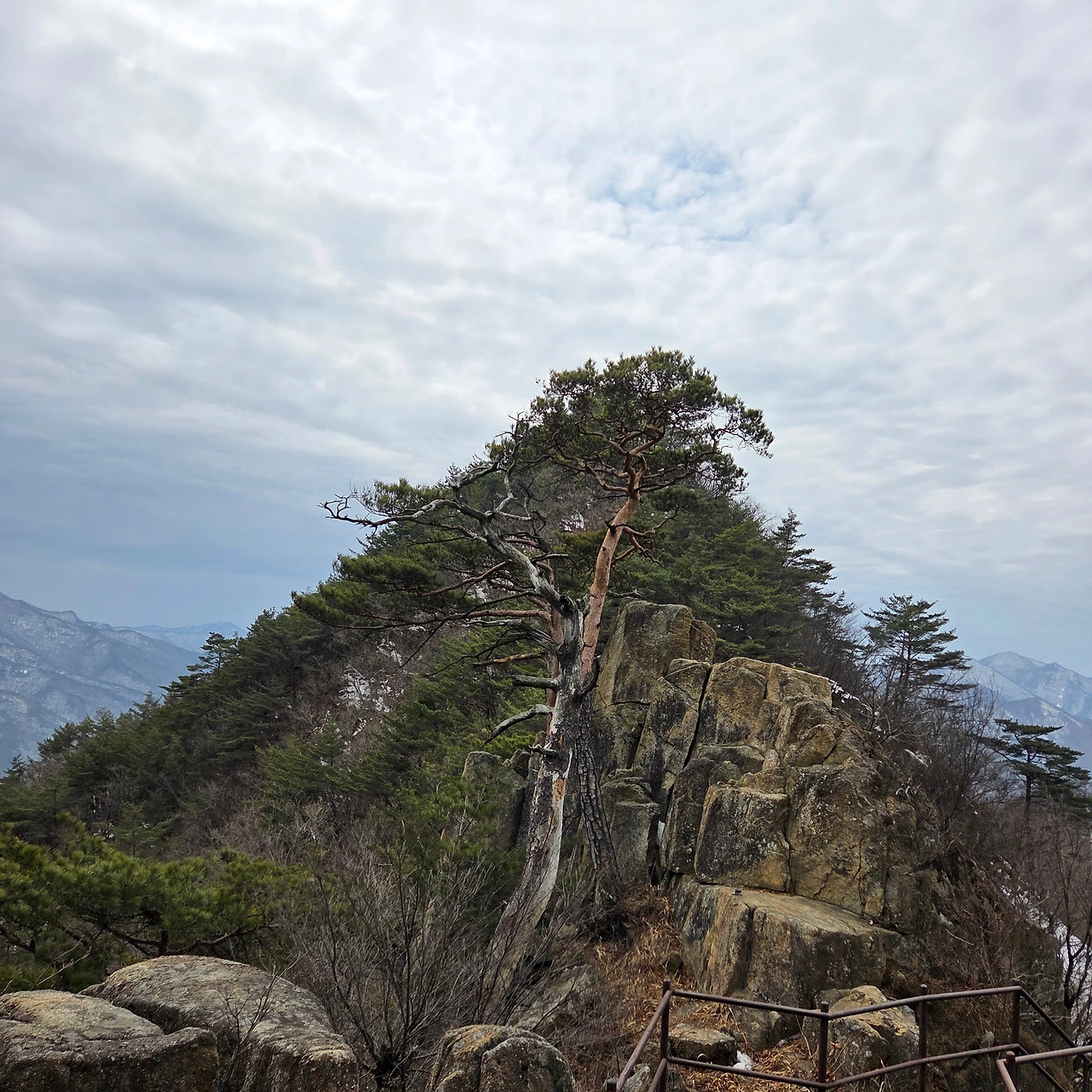 H에게 전화를 하니 물어보니 벌써 상선상봉(상선암봉)을 지나고 있다고 한다. 거리는 1.1km다. 1시간을 앞서가는 친구를 따라잡는 것이 싶지 않을 것이다. 오르고 오르고 또 오른다. 암릉이다. 그리고 주변의 경치는 없다. 다만, 중간중간 바람과 비와 눈이 조각한 바위가 있을 뿐이다. 그리고 고사목도 있다. 그것을 놓치지 않고 담으면서 휴식 없이 걷는다. 상선상봉(상선암봉)을 오르는 것이 가장 힘들다고 할 것이다. 오르고 오르다 보면 못 오를 수 없다고 한 양사언의 시가 생각이 난다.