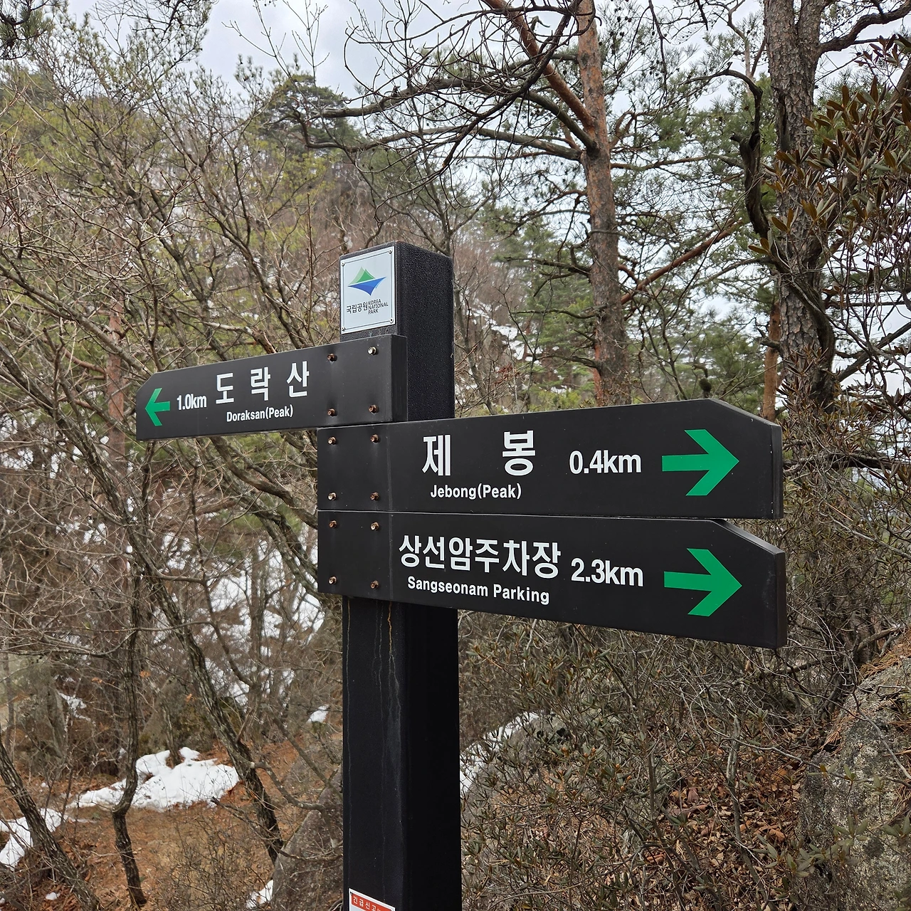 천등산 박달재가 있다. 그곳을 넘었는데 이제는 터널을 통과한다. 그 터널을 지나면 온도가 하강한다. 예전에 기억이 있다. 봄날 산행을 하면서 태백산을 가는데 이 터널을 지난 순간 겨울나라를 경험해 본 기억이 있다. 오늘은 그렇지 않다. 차량은 계속 달려서 단양 IC를 지나고 사인암으로 가고 있다. 산행대장이 등산로 안내를 한다. 암자를 지난 후 산을 오르고 제봉을 지나서 도락산 정상으로 간 후 다시 돌아온 후 채운봉으로 하산하라고 한다. 오늘은 상선암봉을 오르고 제봉을 지난 후 형봉을 거쳐 신선봉, 도락산 정상에 이른 후 돌아서서 신선봉, 삼거리, 채운봉으로 하여 하산을 할 것이다.